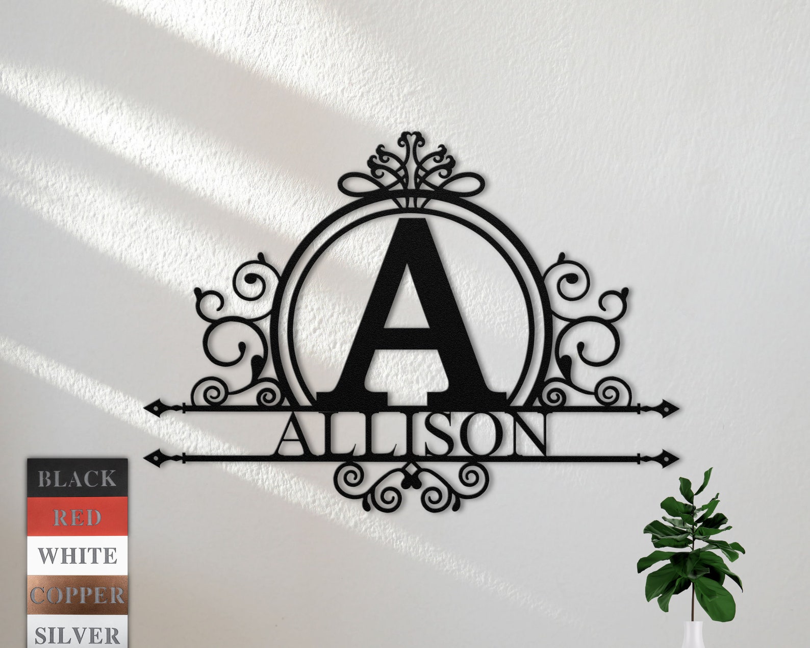 This metal last name sign is made out of 16 gauge steel. Hand prepped, sanded and painted.