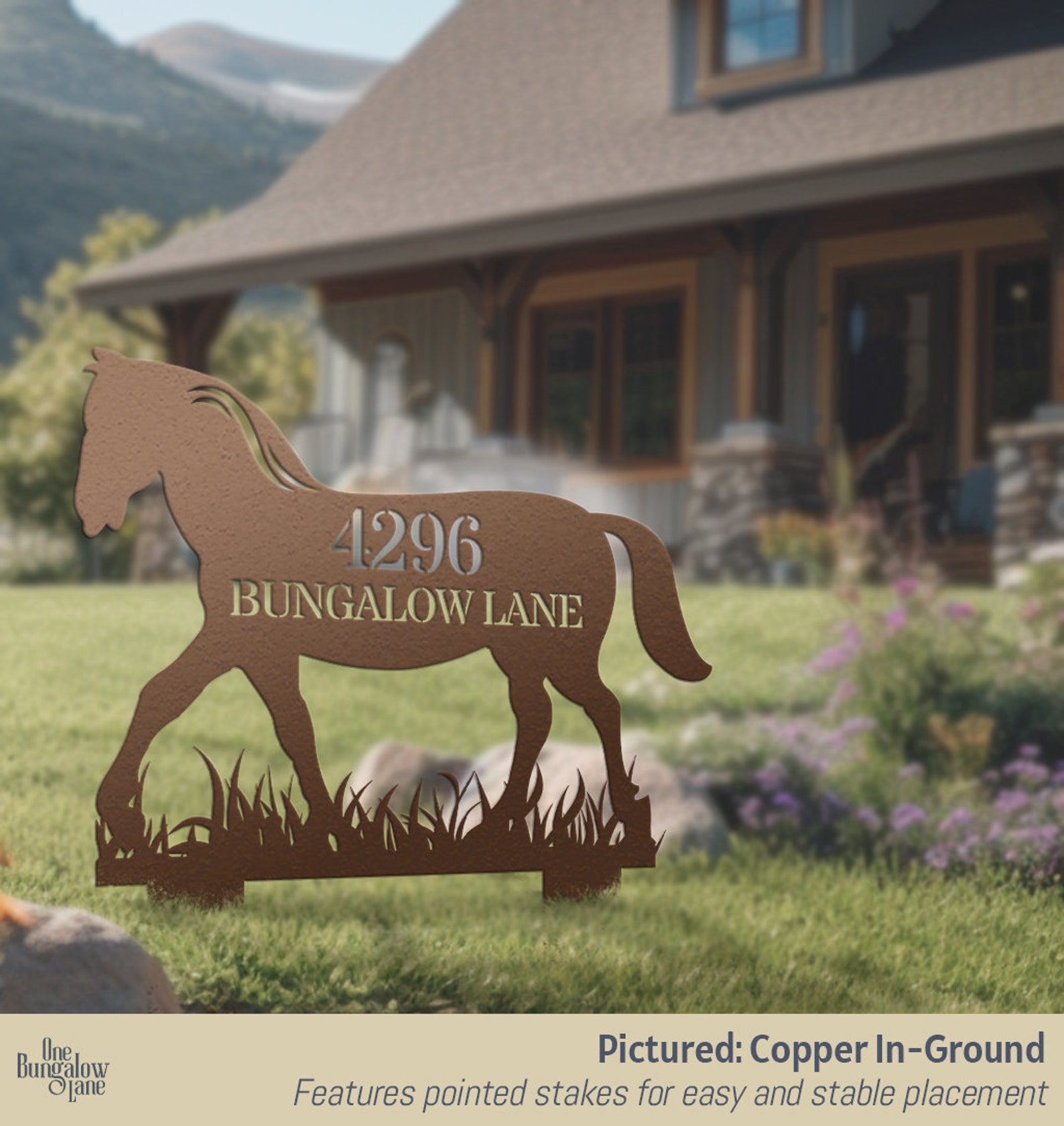 Elevate your outdoor space with our exquisite steel lawn address signs, seamlessly blending nature-inspired designs with functional elegance. At One Bungalow Lane, we take pride in our craftsmanship and personalized charm. Whether displaying your address, family name, or a combination of both, our signs infuse a unique touch into your abode.