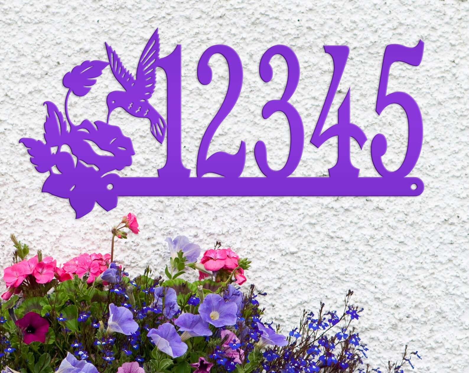 Add a touch of charm to your front porch with this beautiful Metal Address Sign. Perfect for the bird lover, this decorative outdoor decor features a graceful hummingbird design and customizable house numbers. Crafted to withstand the elements, this custom mailbox post signage will elevate the style of your home while showcasing your unique personality. Welcome guests in style with this delightful piece of art.