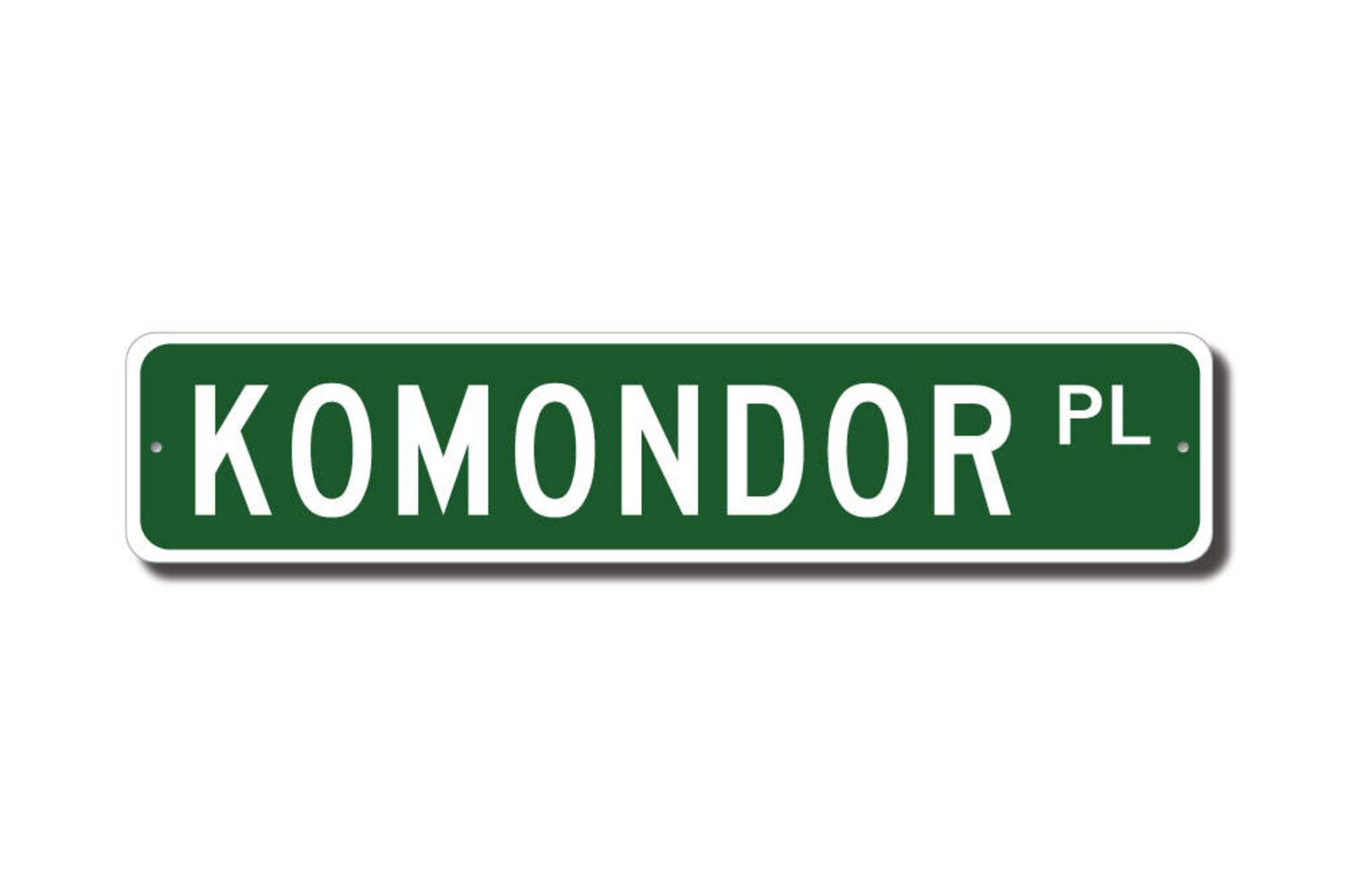 Komondor lovers check out this awesome street sign! This will make the perfect piece for any Komondor lover or Komondor cave. Made of premium aluminum it will stand the test of time. This sign will look great in any room, garage, barn or office! Get this sign for your favorite friend that loves a Komondor !