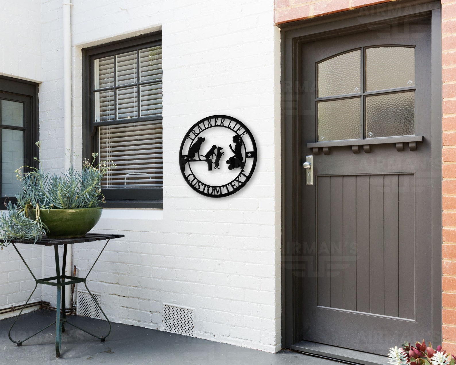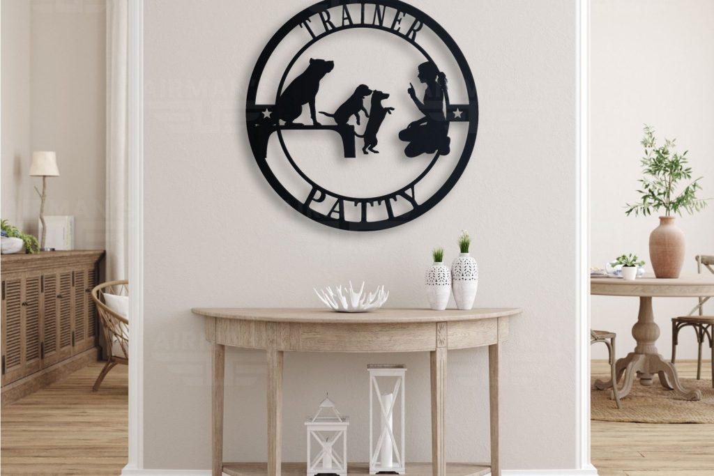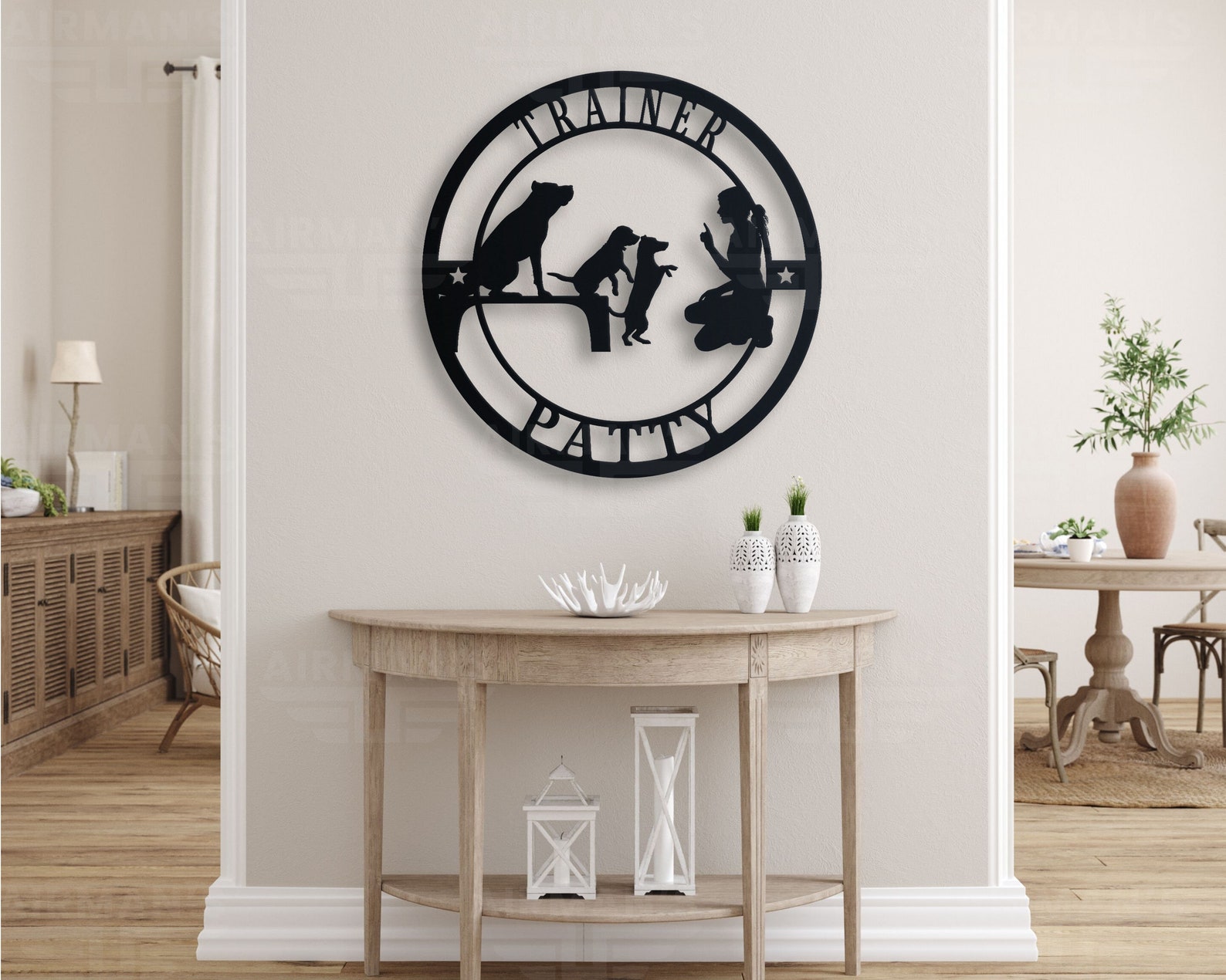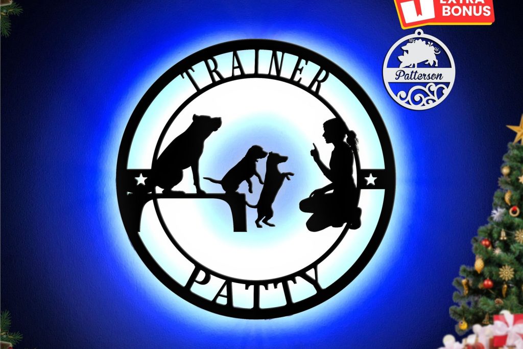 Lady Dog Trainer LED Wall Art: Personalized Pet Trainer Decor