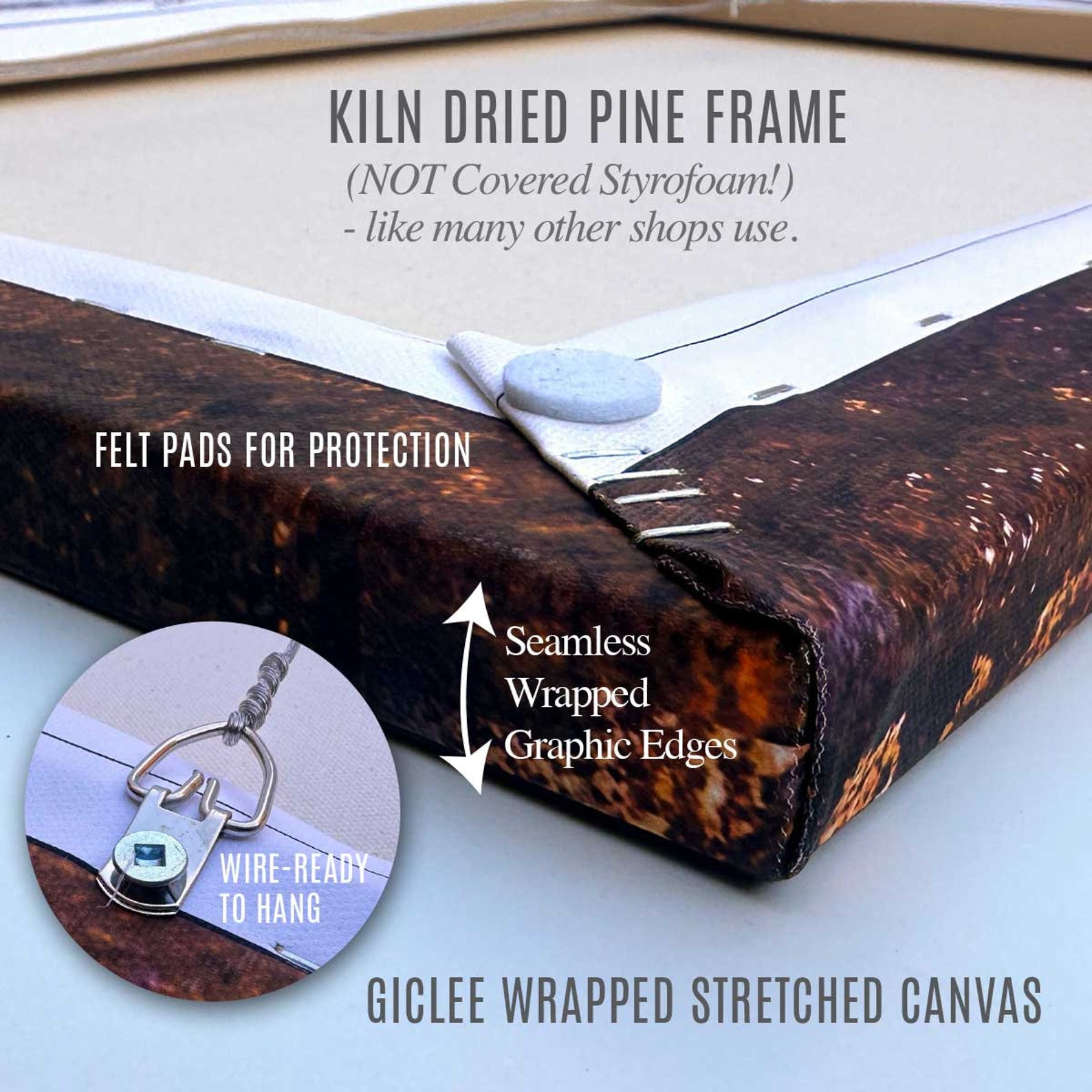 Beveled Wood Stretch Bars – Make frame less noticeable on front of canvas.