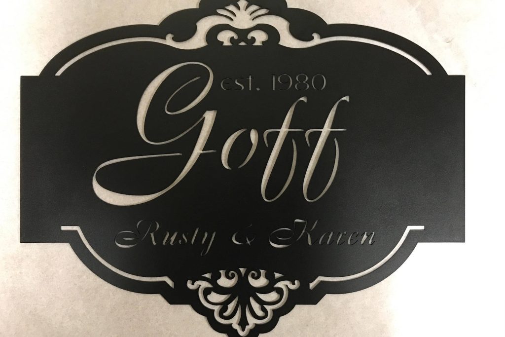 Metal laser cut sign personalized with your name finished in baked on black powder coat finish. measures 22"". Makes a very elegant statement to your front entrance. You can also add first names or Est. date Our finish is a baked on powder coat for extremely durable, long lasting finish