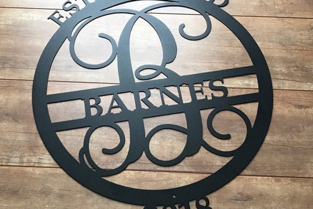 Our Circle Established Last Name Monogram Metal Sign is made out of 14 gauge 100% USA steel and powder coated in your choice of black, brown, or white front and back for the HIGHEST QUALITY!