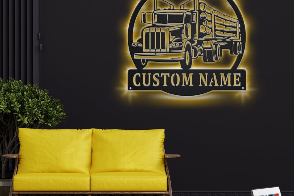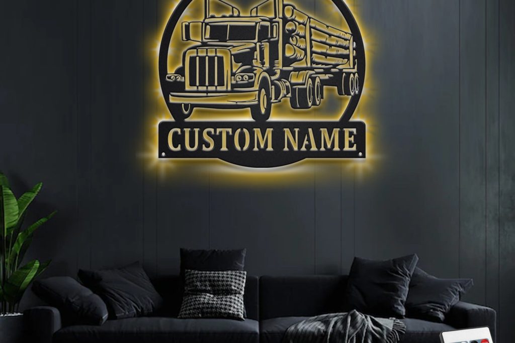 Be the first to review “Log Truck Metal Art with LED, Personalized Sign”