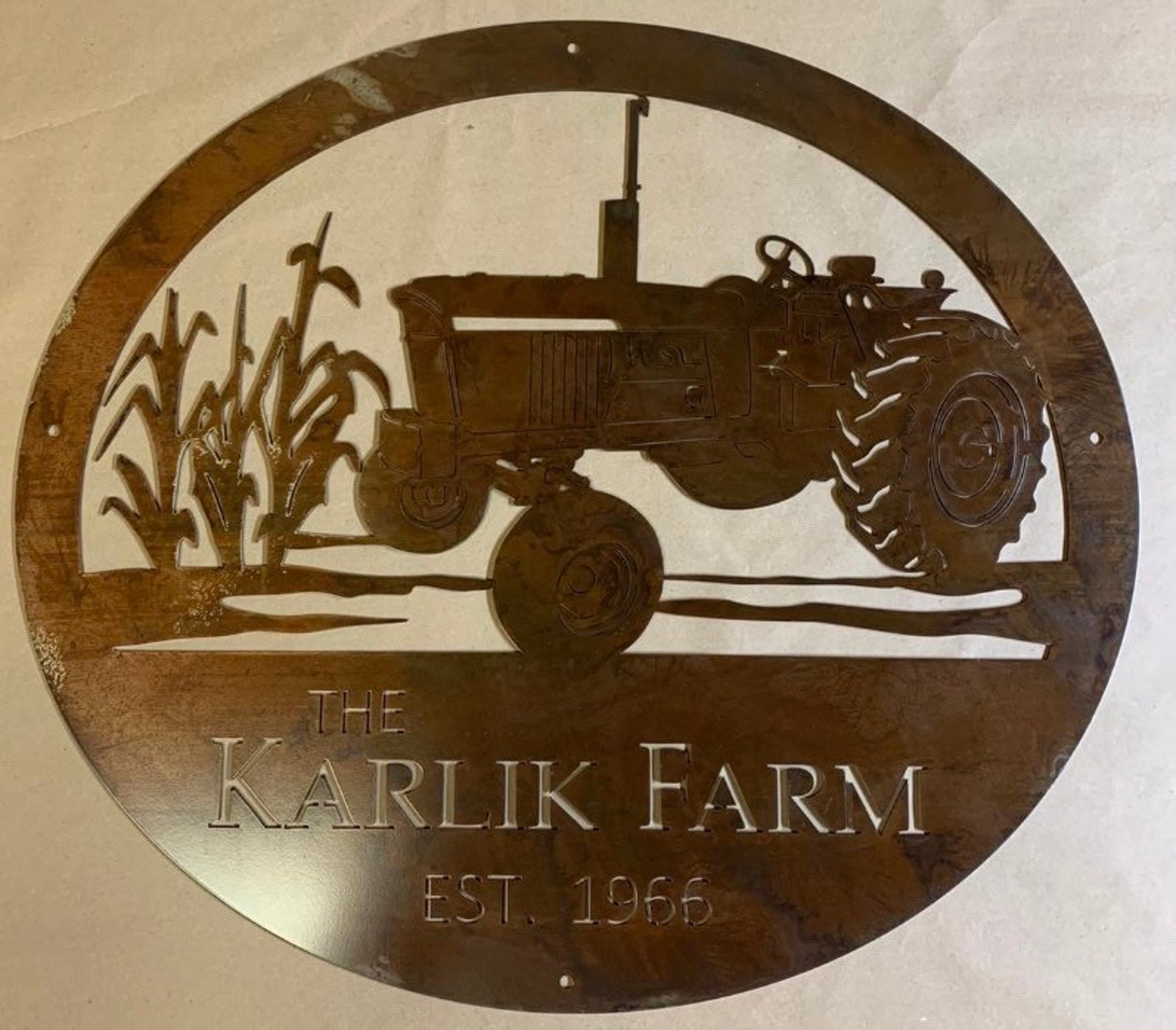 Metal laser cut sign personalized with your name finished in acid washed bronze, or copper or black powder coat. measures 24"". You can also add first names or Est. date etc. Our finish is a baked on powder coat for extremely durable, long lasting finish