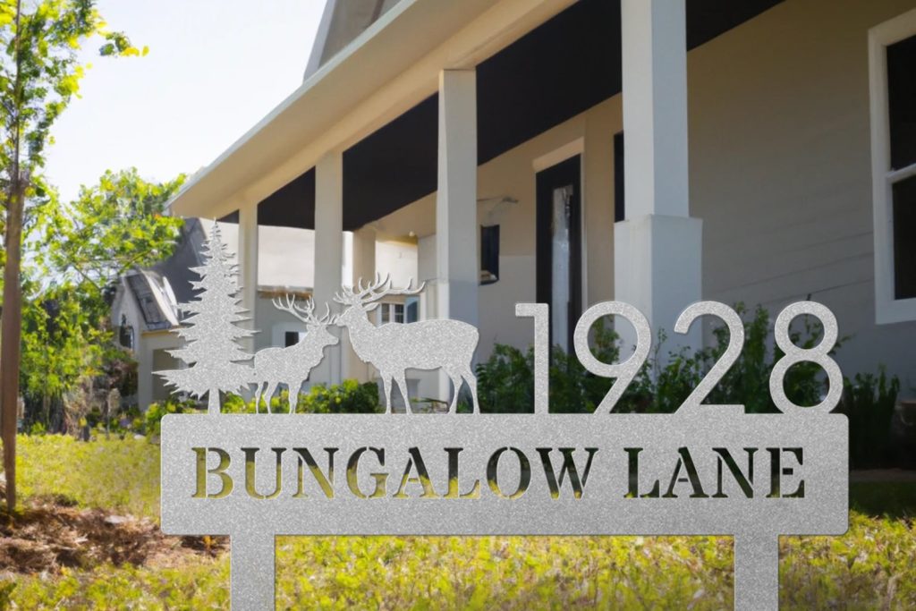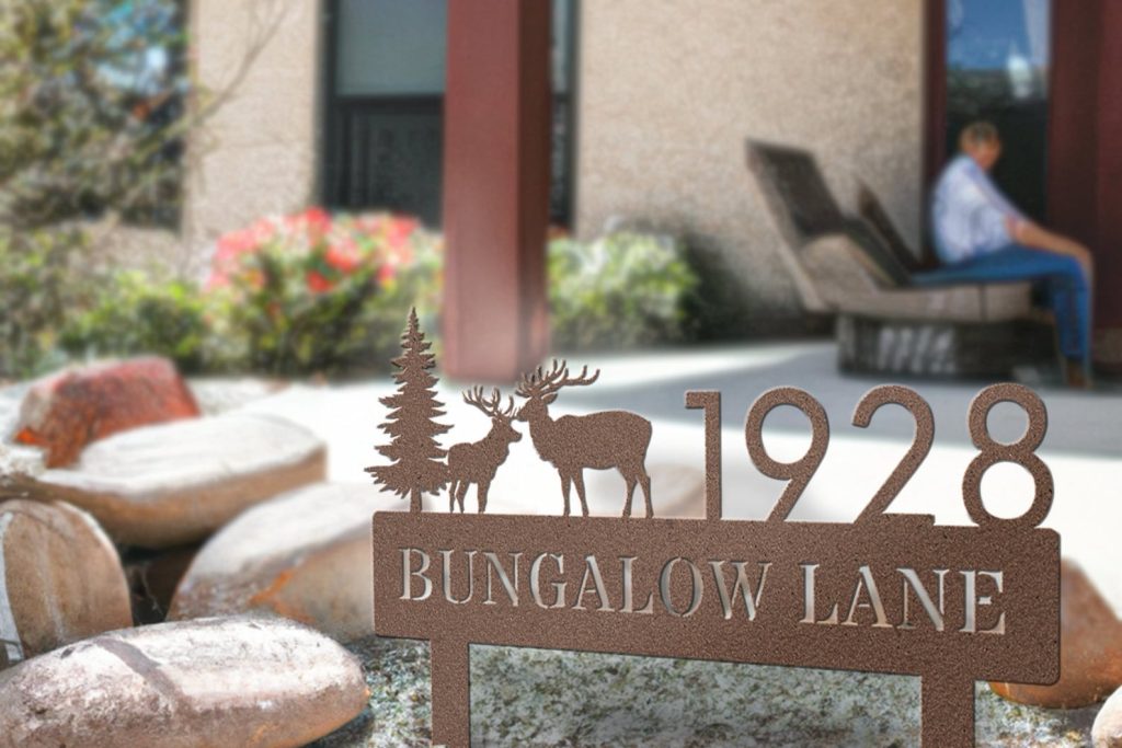 Elevate your outdoor space with our exquisite steel lawn address signs, seamlessly blending nature-inspired designs with functional elegance. At One Bungalow Lane, we take pride in our craftsmanship and personalized charm. Whether displaying your address, family name, or a combination of both, our signs infuse a unique touch into your abode.