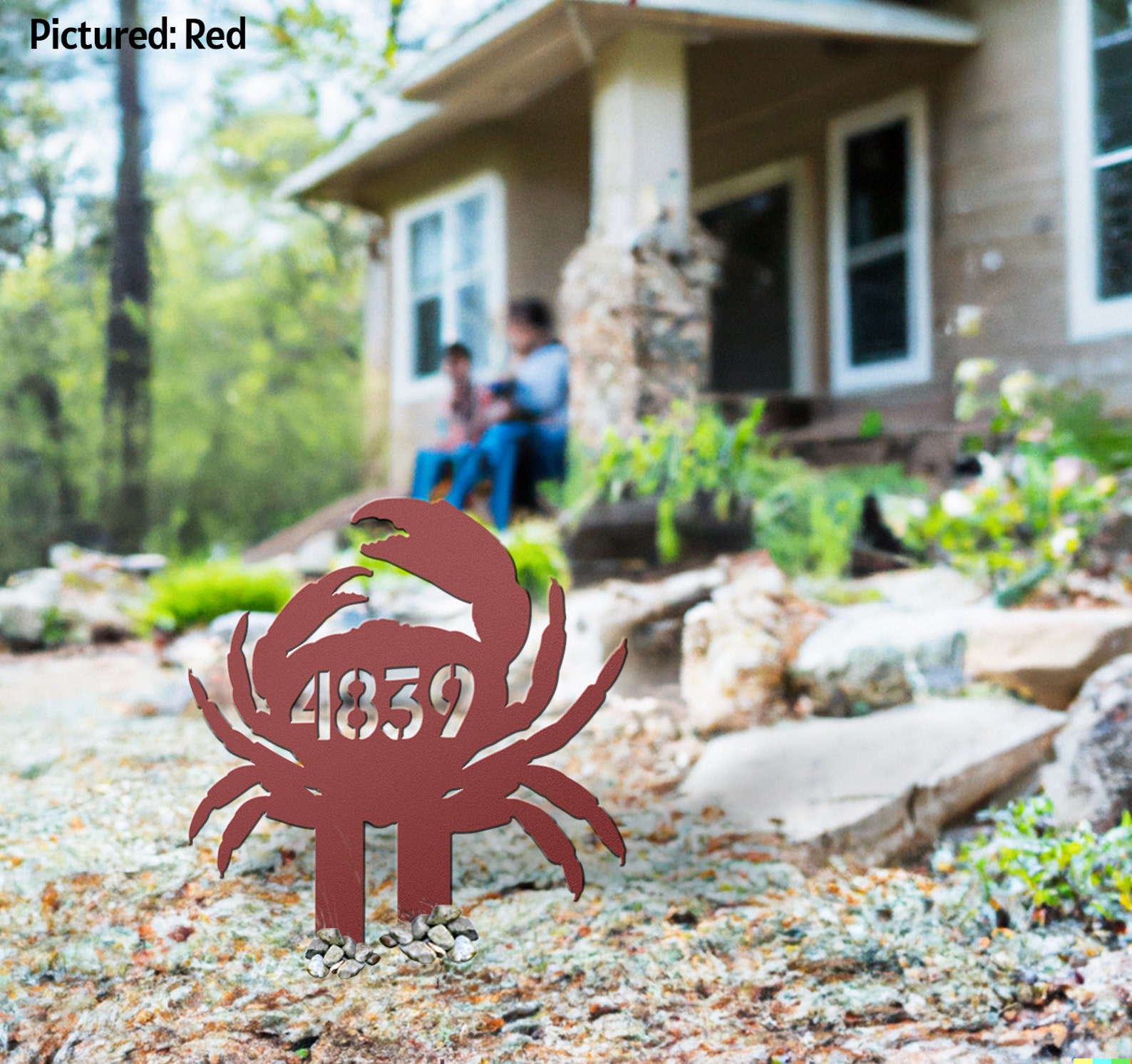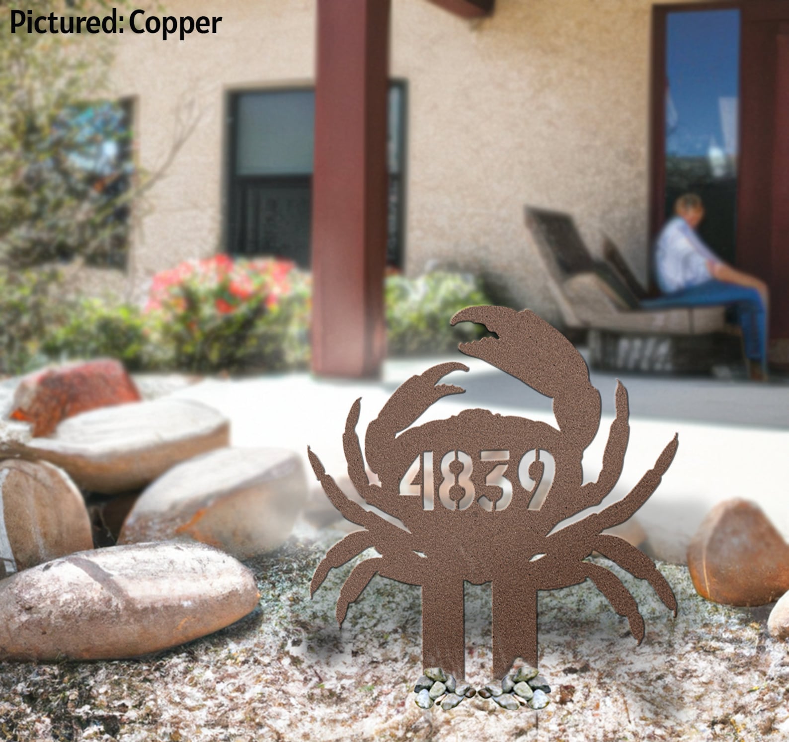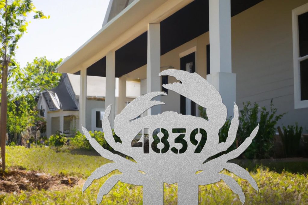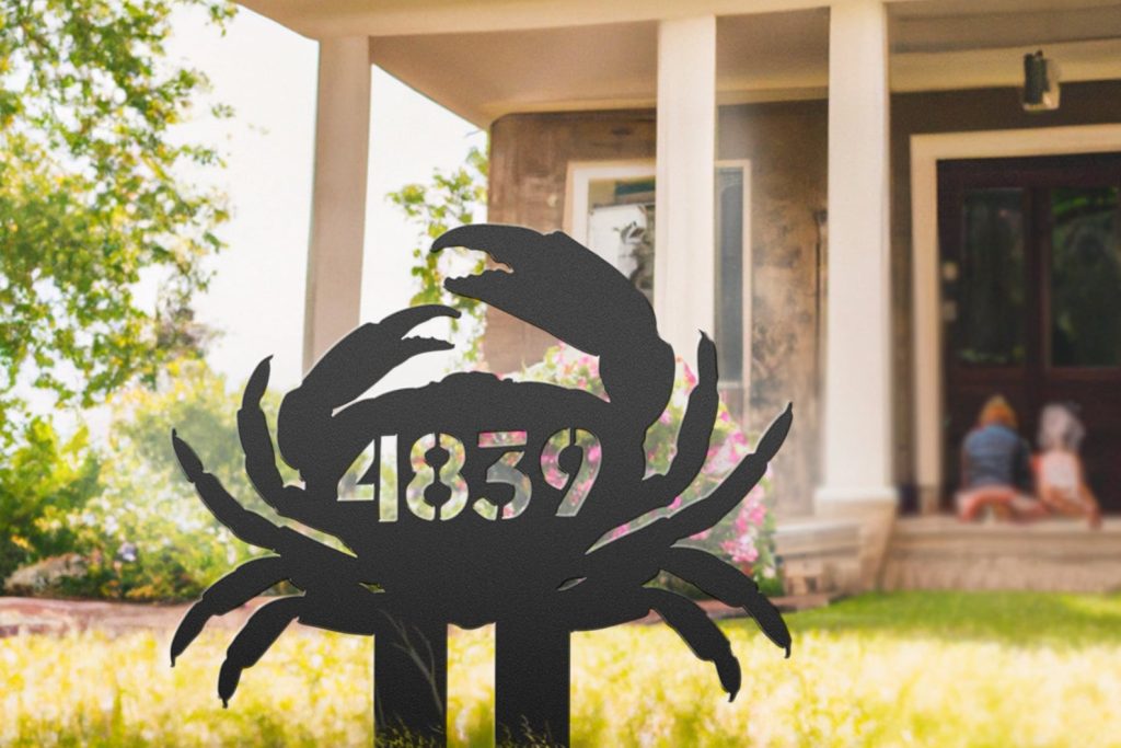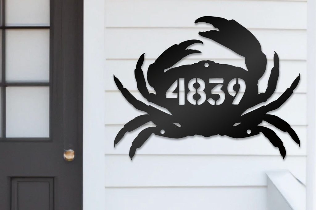 Metal Crab Address Sign for Beach House, Custom Numbers
