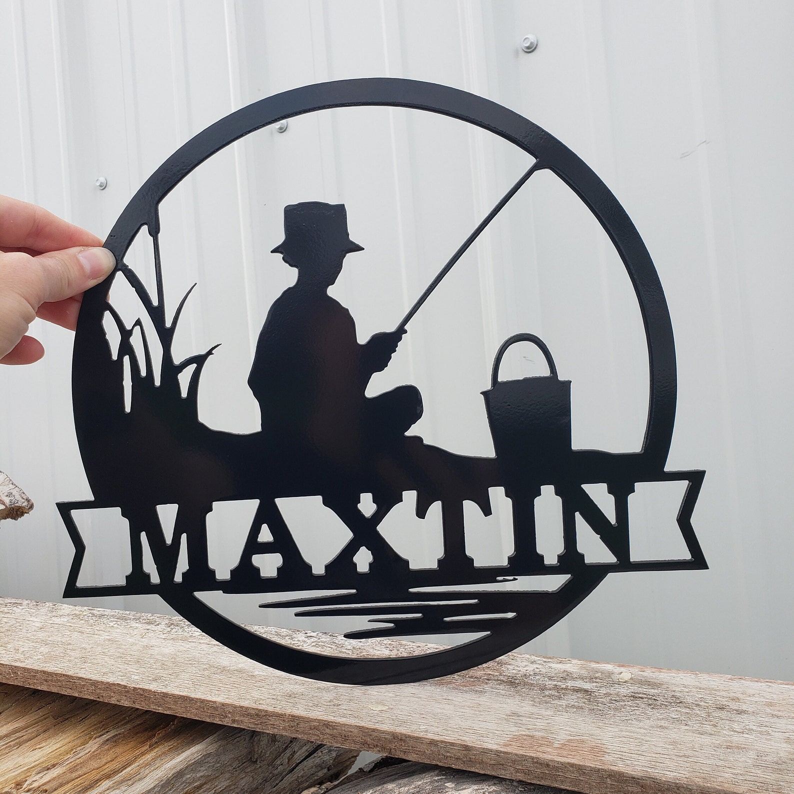 This hand made metal name sign makes a great gift for fishermen. Put it up in the cabin or on your bedroom door. This fishing sign is sure to spread joy to all.