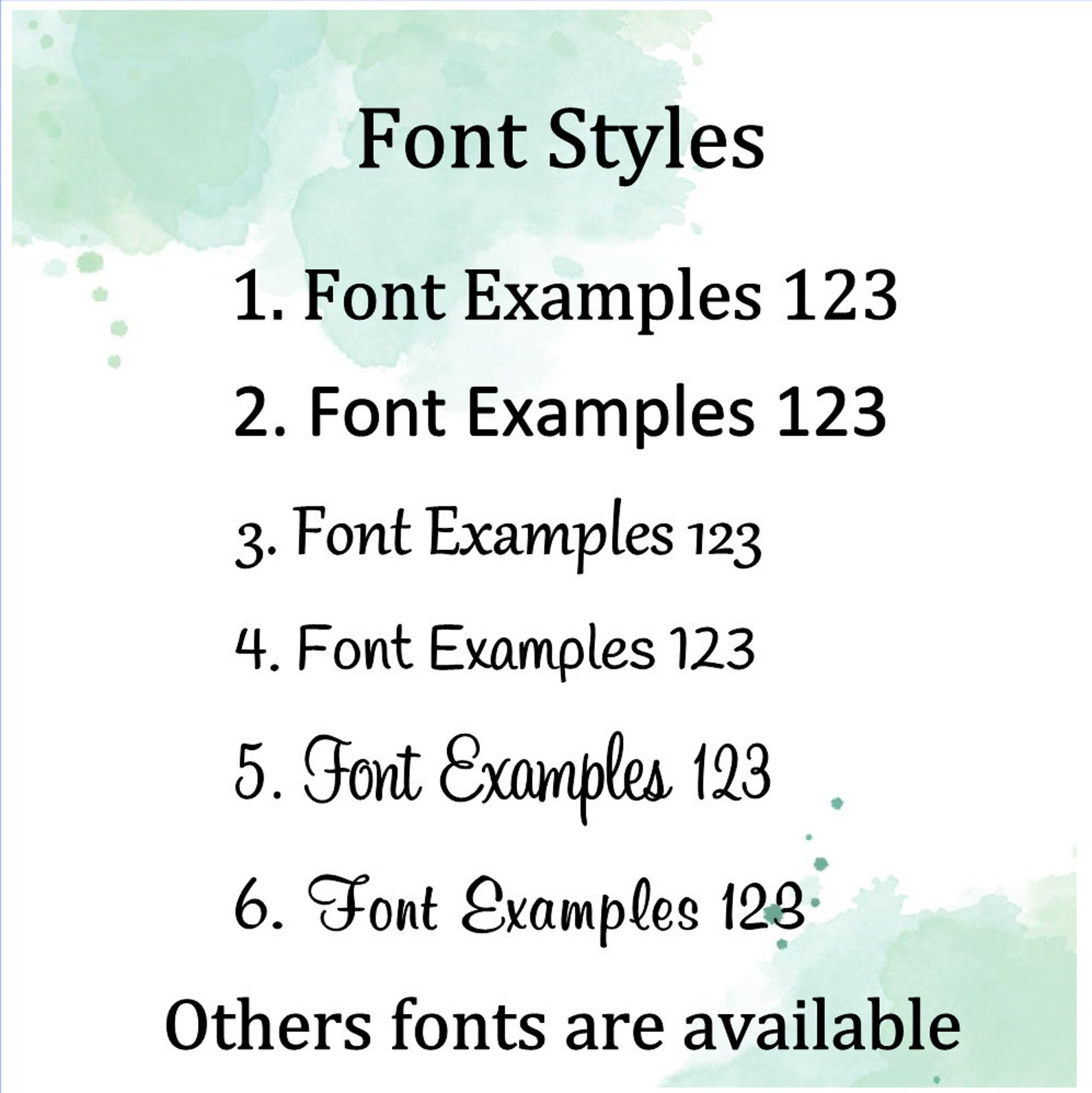 A proof will be sent to you for review before we engrave your plate. Other fonts are available.