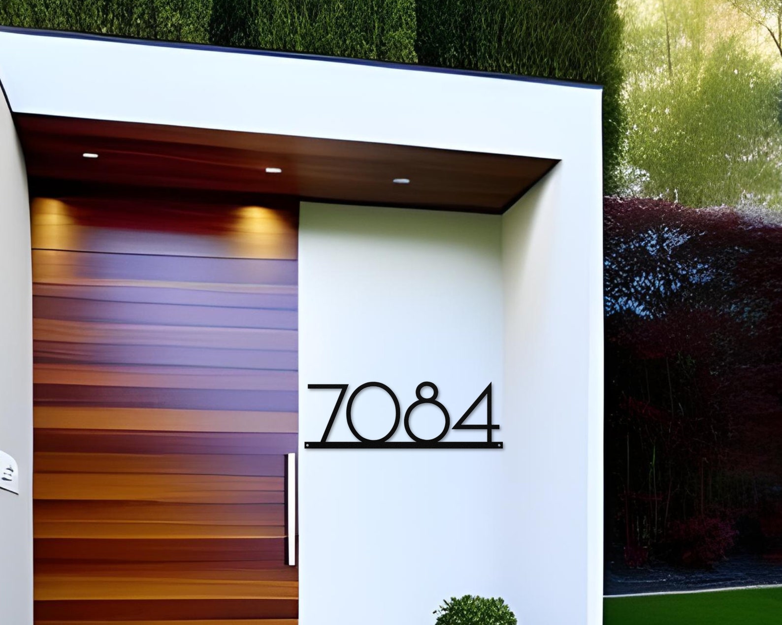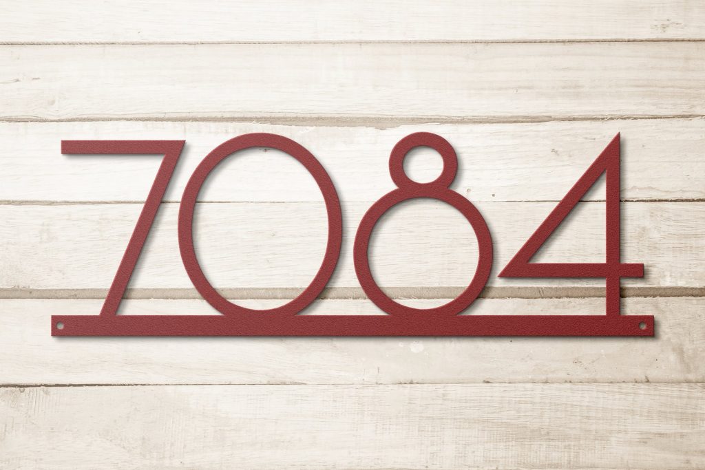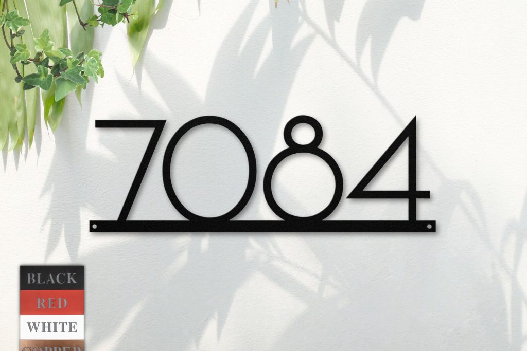 Enhance your outdoor decor with the trendy mid century modern address sign. This metal house number is made up with 18 gauge steel which is durable and environment resistant. It will give the touch of elegance to your wall by adding this steel sign in front door, yard or any place of your choice!