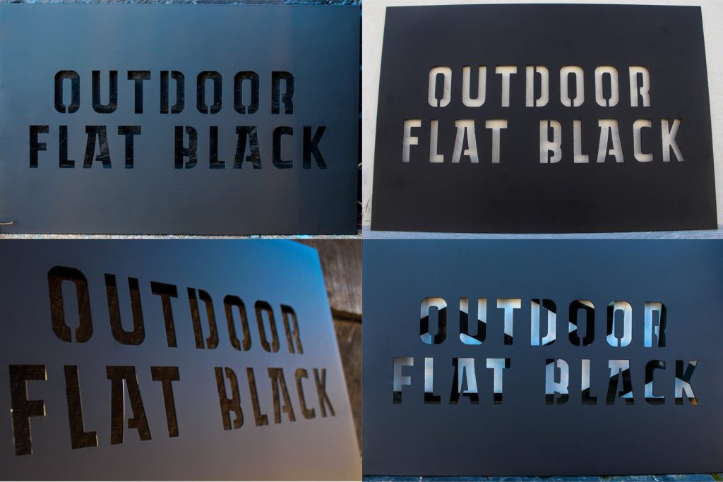 OUTDOOR FLAT BLACK – The Outdoor Flat Black finish is a matte black powder coat. This UV protected finish will protect the steel in the toughest conditions including outside in wet and salty environments. Powder coat is a thick industrial coating that is VOC free and holds up for many years.