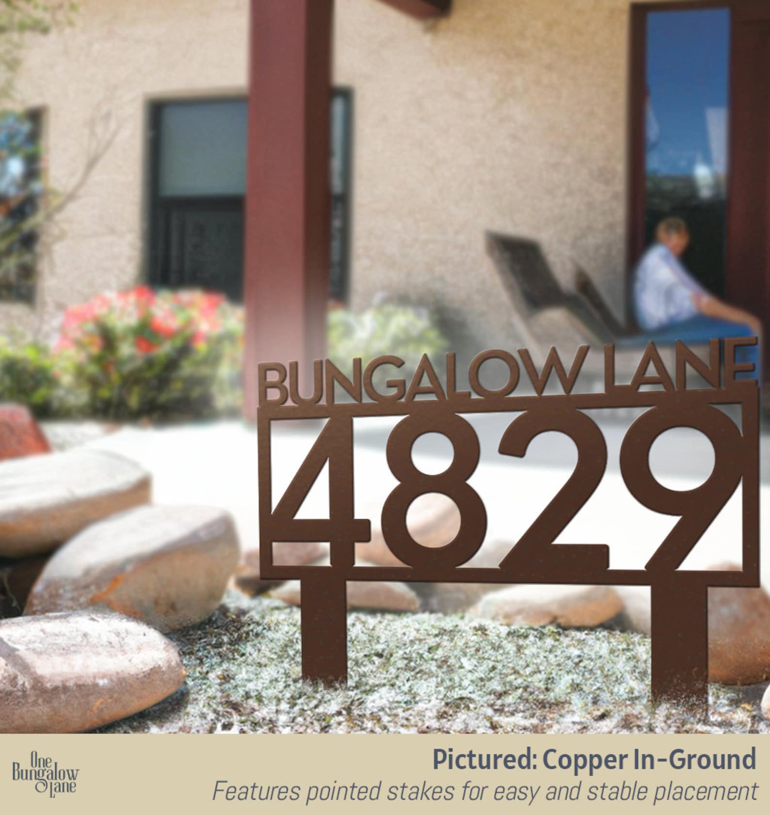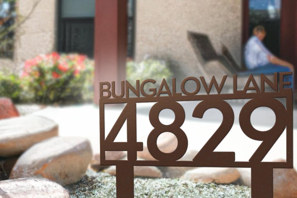 Elevate your outdoor space with our exquisite steel lawn address signs, seamlessly blending nature-inspired designs with functional elegance. At One Bungalow Lane, we take pride in our craftsmanship and personalized charm. Whether displaying your address, family name, or a combination of both, our signs infuse a unique touch into your abode.