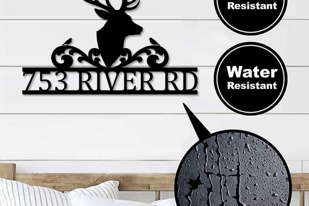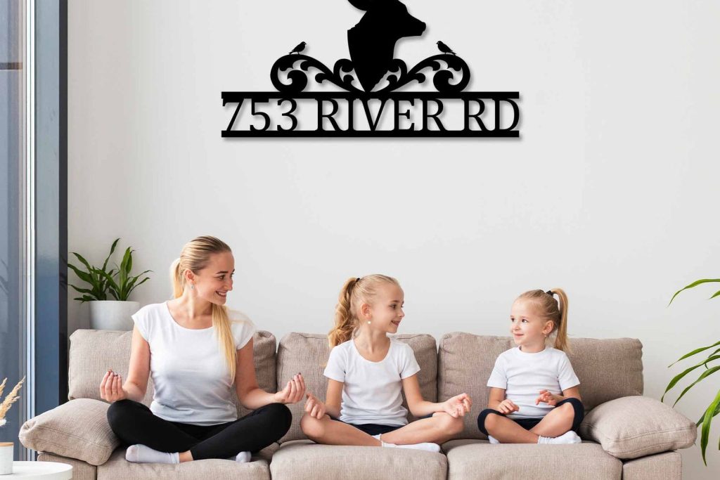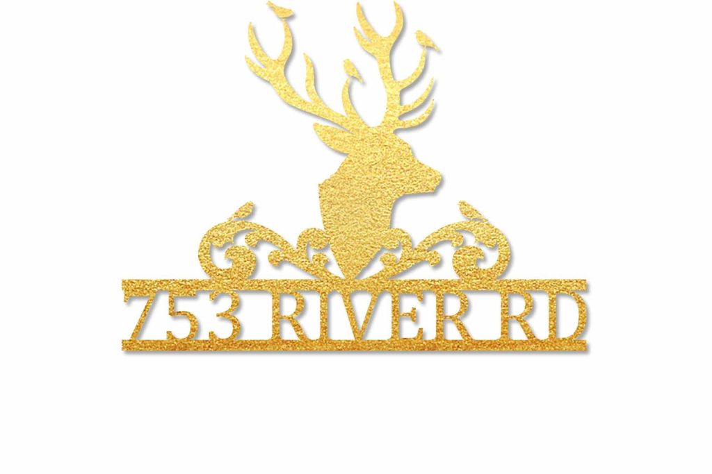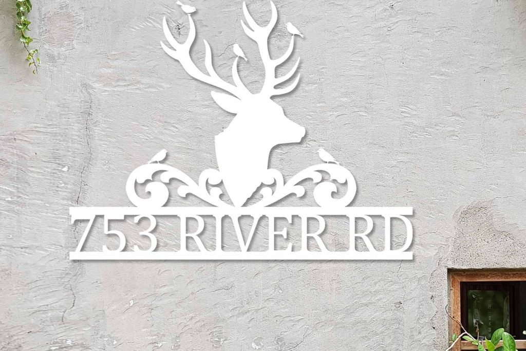 Modern Deer Metal Street Address Sign