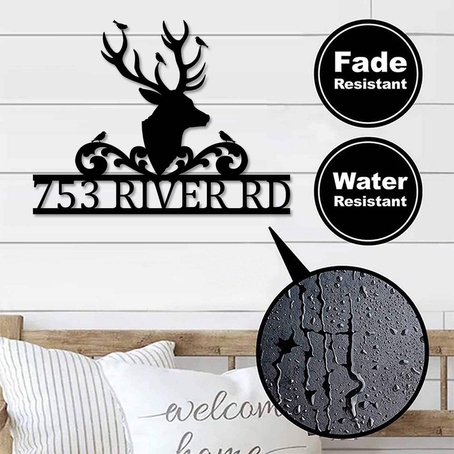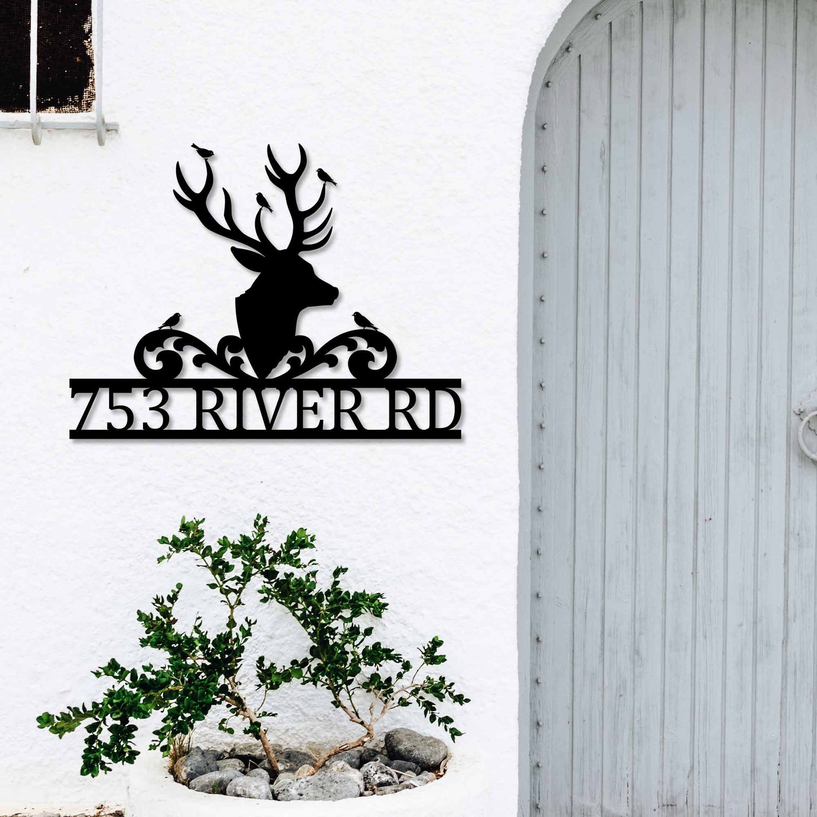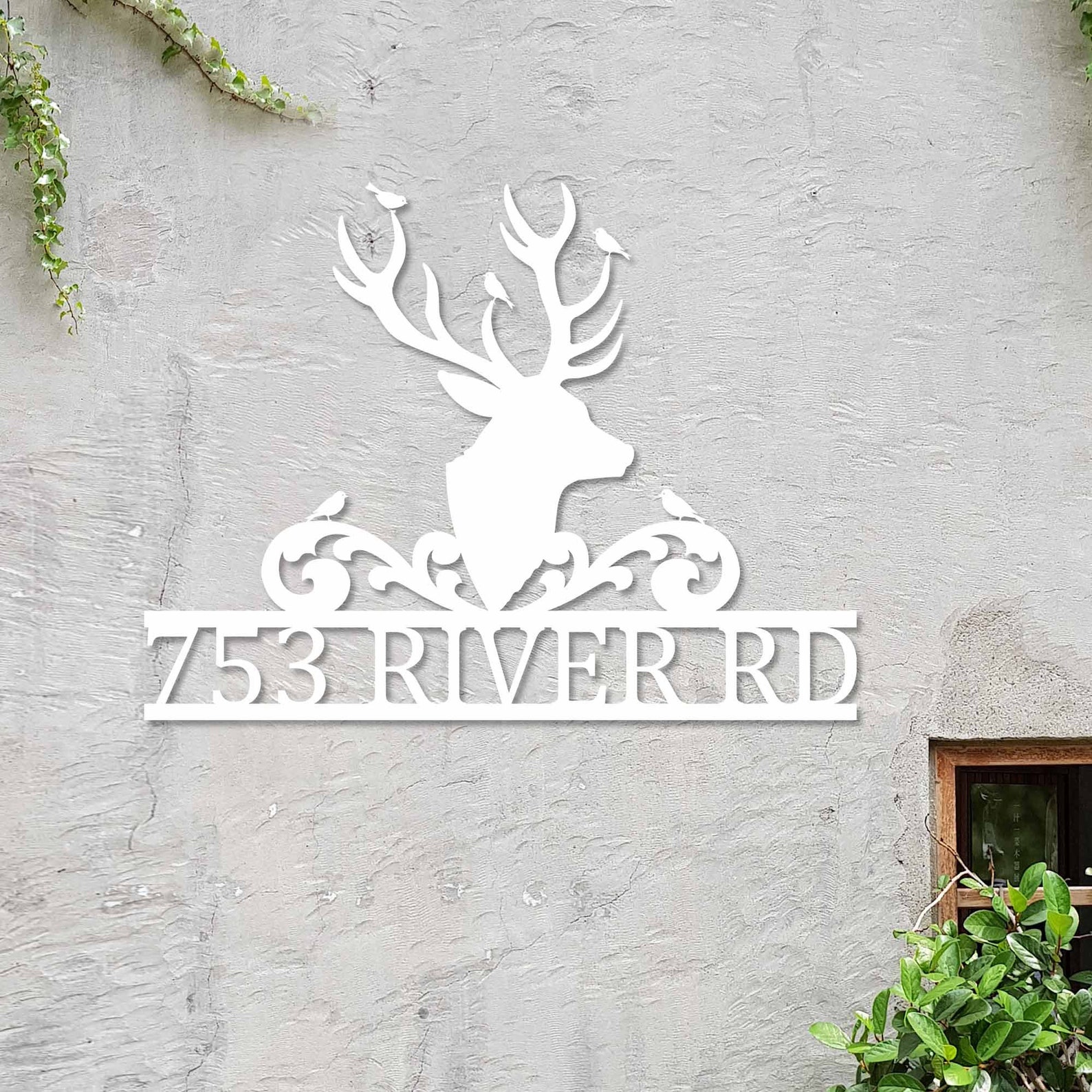 Modern Deer Metal Street Address Sign