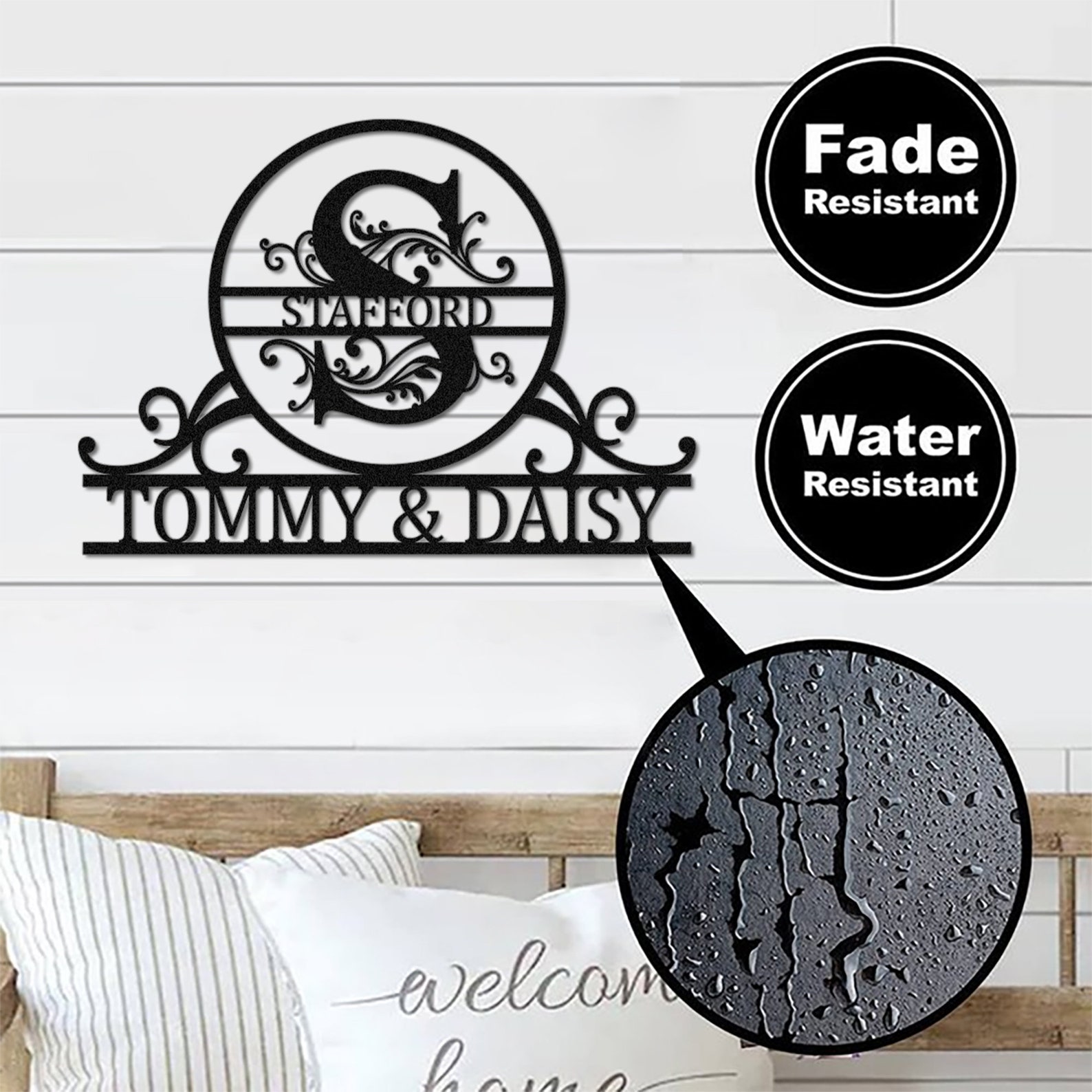 Size Variety: Available in 12", 16", 18", 24", 30", 34" and 36". This surname metal logo is suitable for different people and different occasions. Such as home front door and living room, wedding parties, housewarming events, etc.