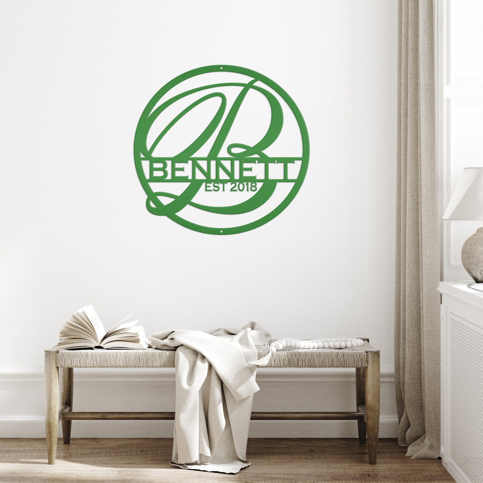 Add a touch of elegance and personalization to your home decor with our Metal Monogram Name Sign. With the option to include an established date, this custom wreath entry door hanger makes a perfect wedding or anniversary gift. Celebrate new beginnings or house closing with this thoughtful and unique present. Make a lasting impression with this one-of-a-kind piece that will instantly elevate any space.