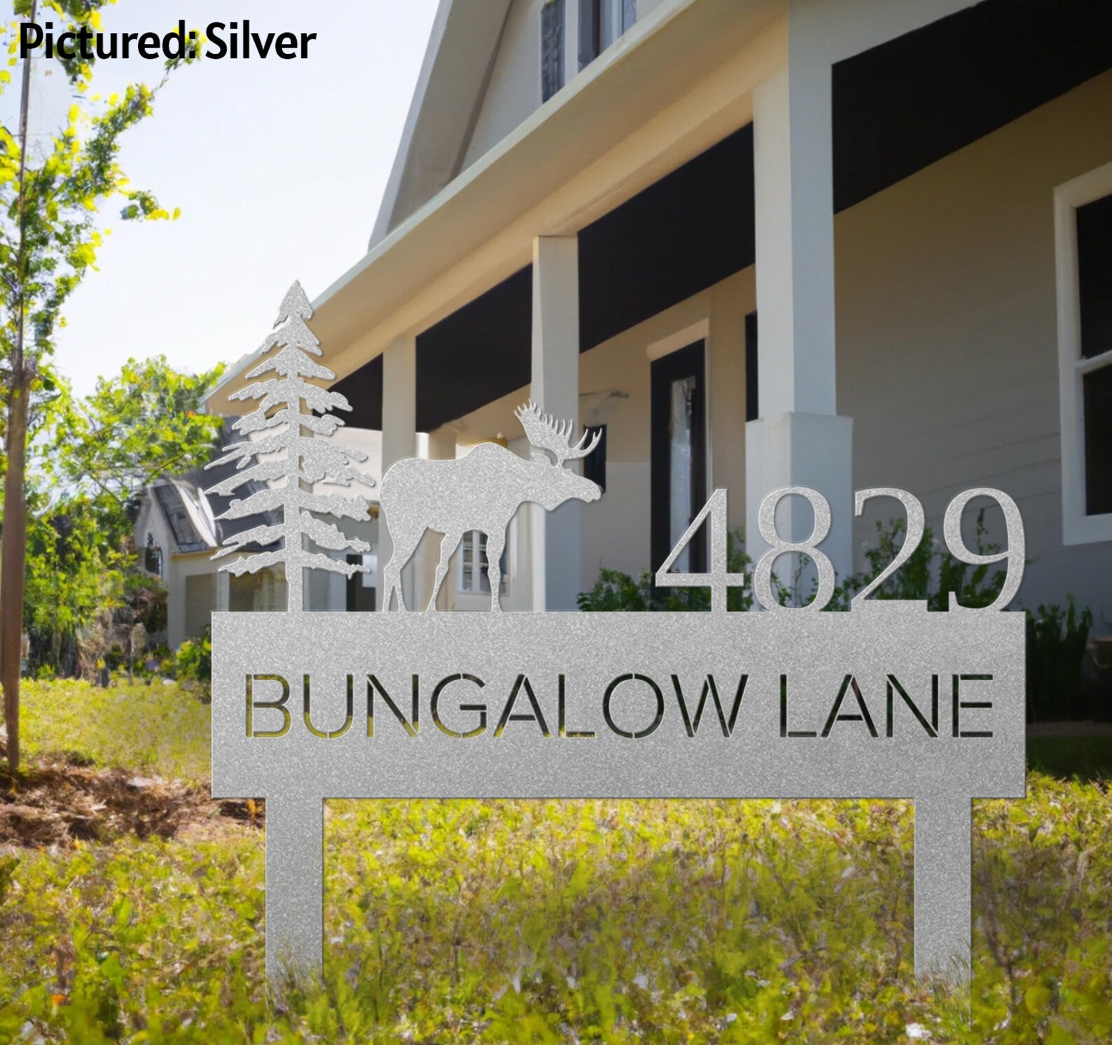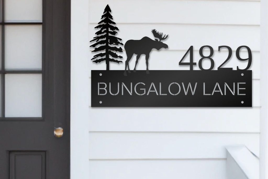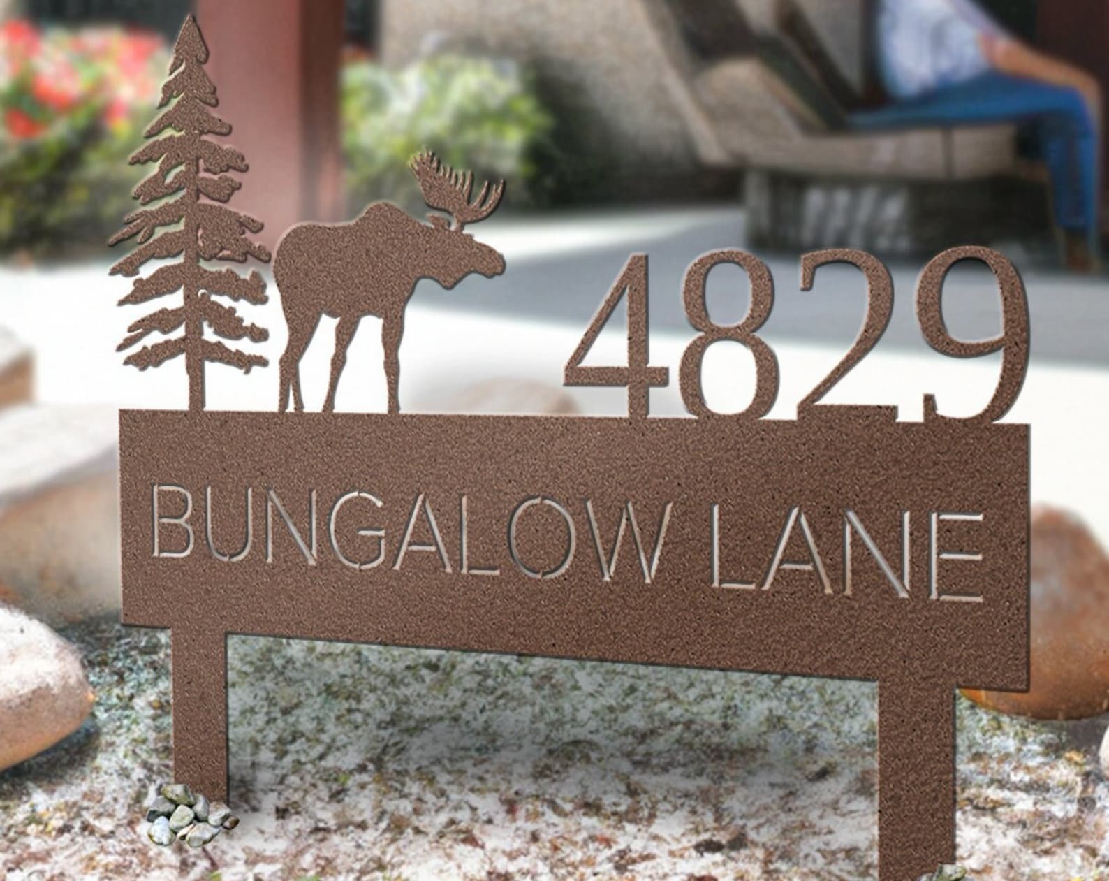 Outdoor Metal SigntAddress Sign YardtSteel Street NumbertFamily Name SigntFront Porch DoortWith Stakes GroundtMountain CabintMoose DecortHousewarming GiftstNew HomeownertRealtor Closing Gifttlarge big copper redtblack white silver
