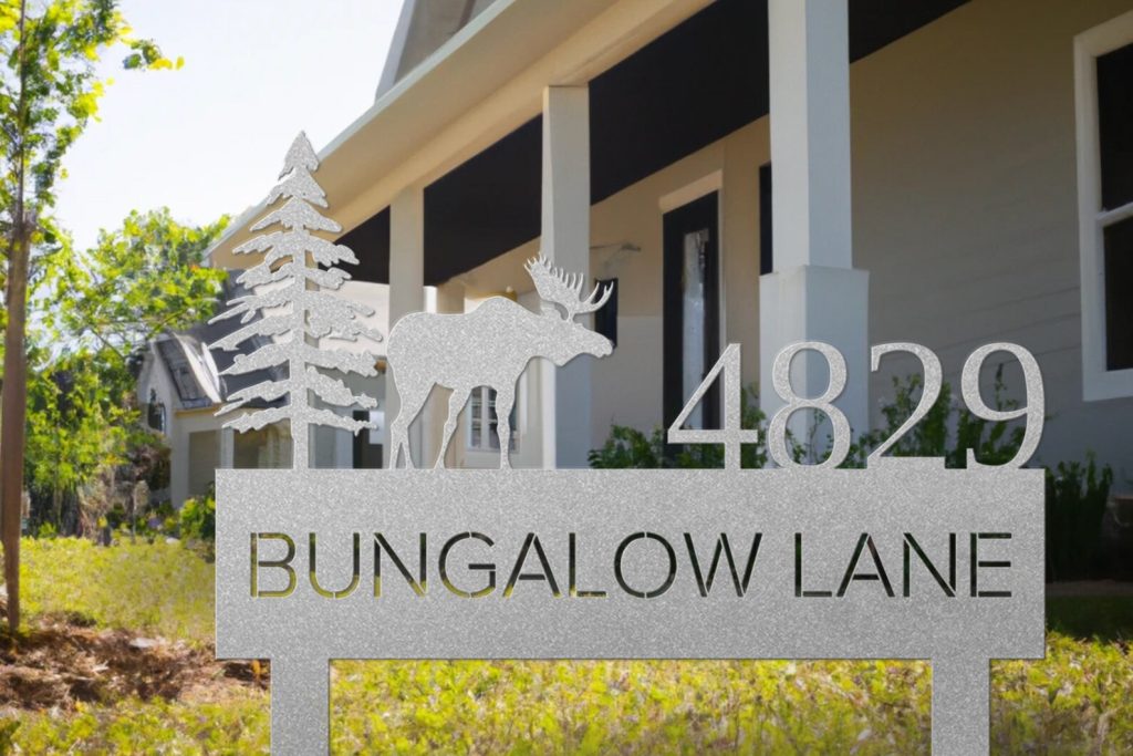 Elevate your outdoor space with our exquisite steel lawn address signs, seamlessly blending nature-inspired designs with functional elegance. At One Bungalow Lane, we take pride in our craftsmanship and personalized charm. Whether displaying your address, family name, or a combination of both, our signs infuse a unique touch into your abode.
