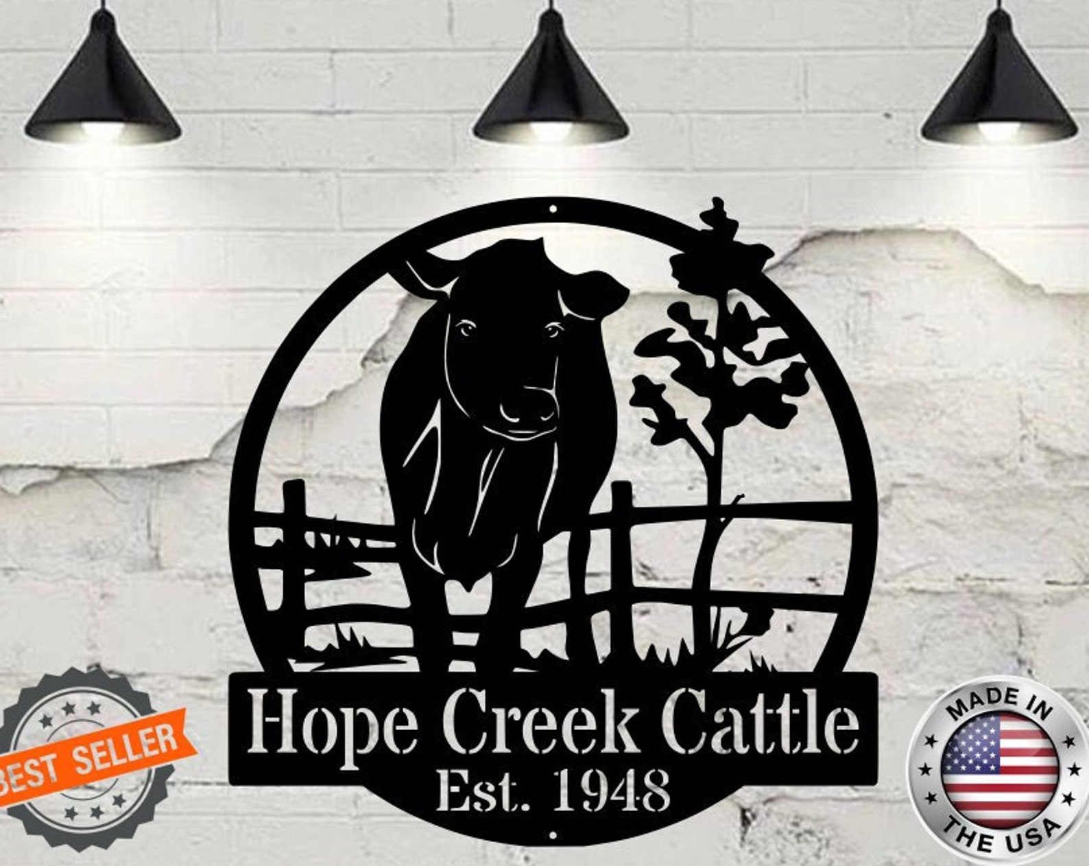 Measures 3 ftx 20" or 30"x 17" or 48". Powder coated black or beautiful copper acid and clear coated. LEAVE NOTE TO SELLER WITH NAME AND OR EST. DATE YOU WANT ON SIGN. PROOF PROVIDED. NOTE! If you order brushed metal, it will rust within a short time since theres no UV block, unlike black which is a solid finish