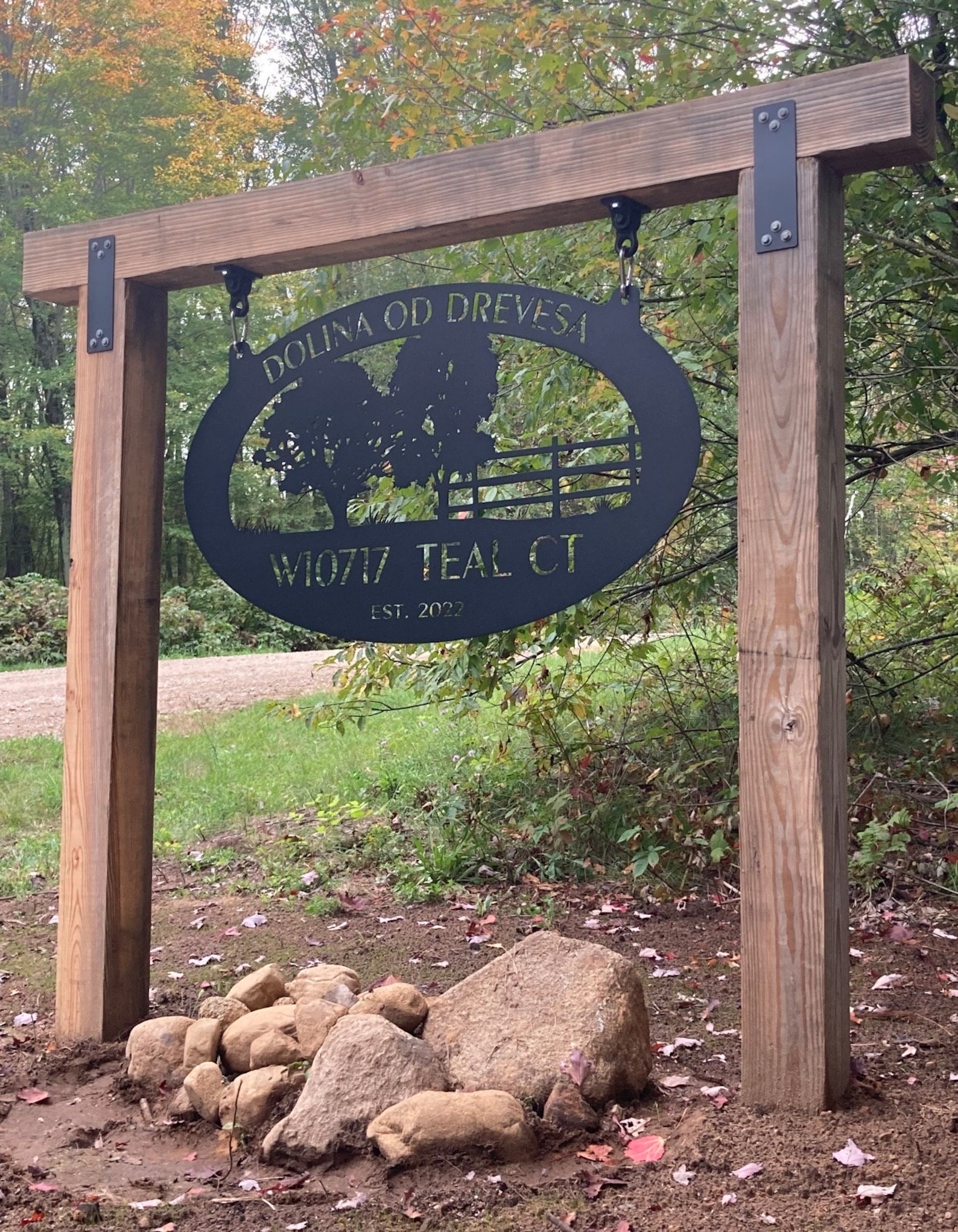 Made of 14 gauge metal . Makes a very attractive entrance sign.Incl with the price is customizing with your name.Our finish is a baked on powder coat for a very long lasting durable finish.