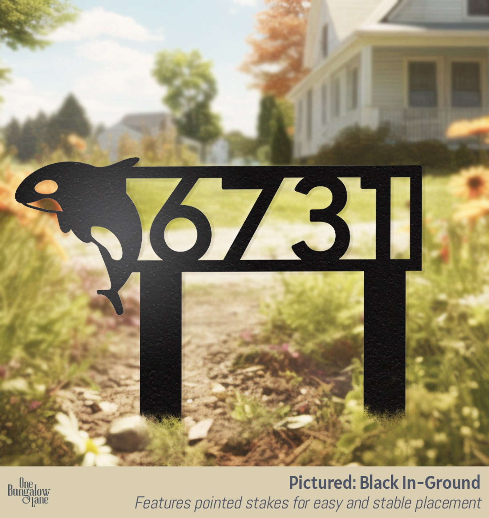 Be the first to review “Orca Whale Metal Yard Address Sign with Stakes”