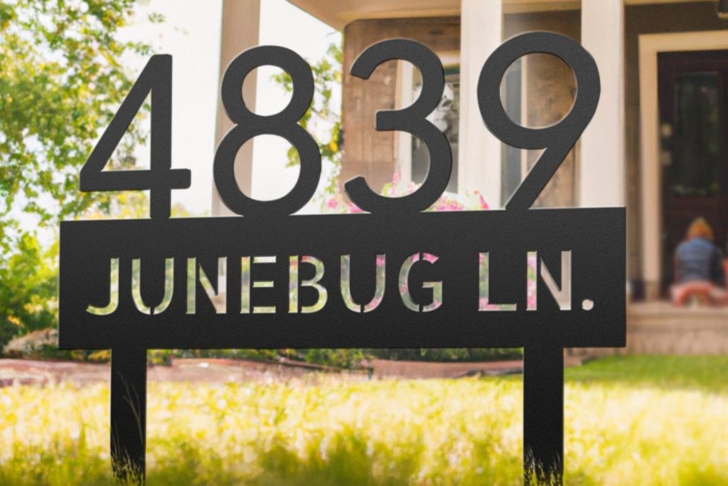 Elevate your outdoor space with our exquisite steel lawn address signs, seamlessly blending nature-inspired designs with functional elegance. At One Bungalow Lane, we take pride in our craftsmanship and personalized charm. Whether displaying your address, family name, or a combination of both, our signs infuse a unique touch into your abode.