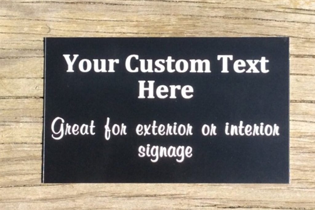 7"L x 5"H- engraved black metal plate. Engraved with your custom text. Our metal ID plates are commercial grade and will last years outdoors. Custom sizes are available.