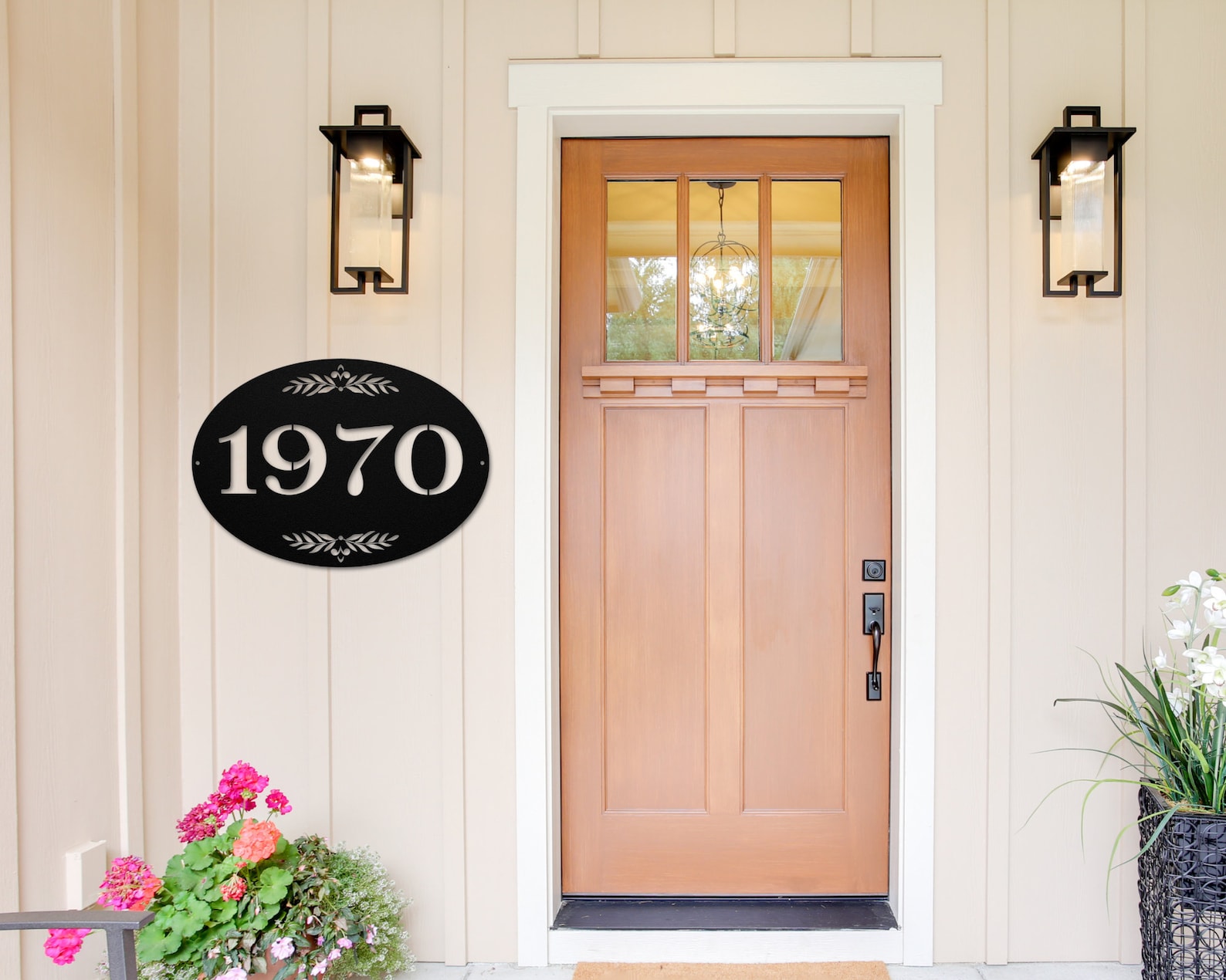 Enhance your outdoor decor with the trendy oval address sign. This custom house number sign is made up with 18 gauge steel which is durable and environment resistant. This address plauqe will give the touch of elegance to your wall by adding at front door, porch or yard!