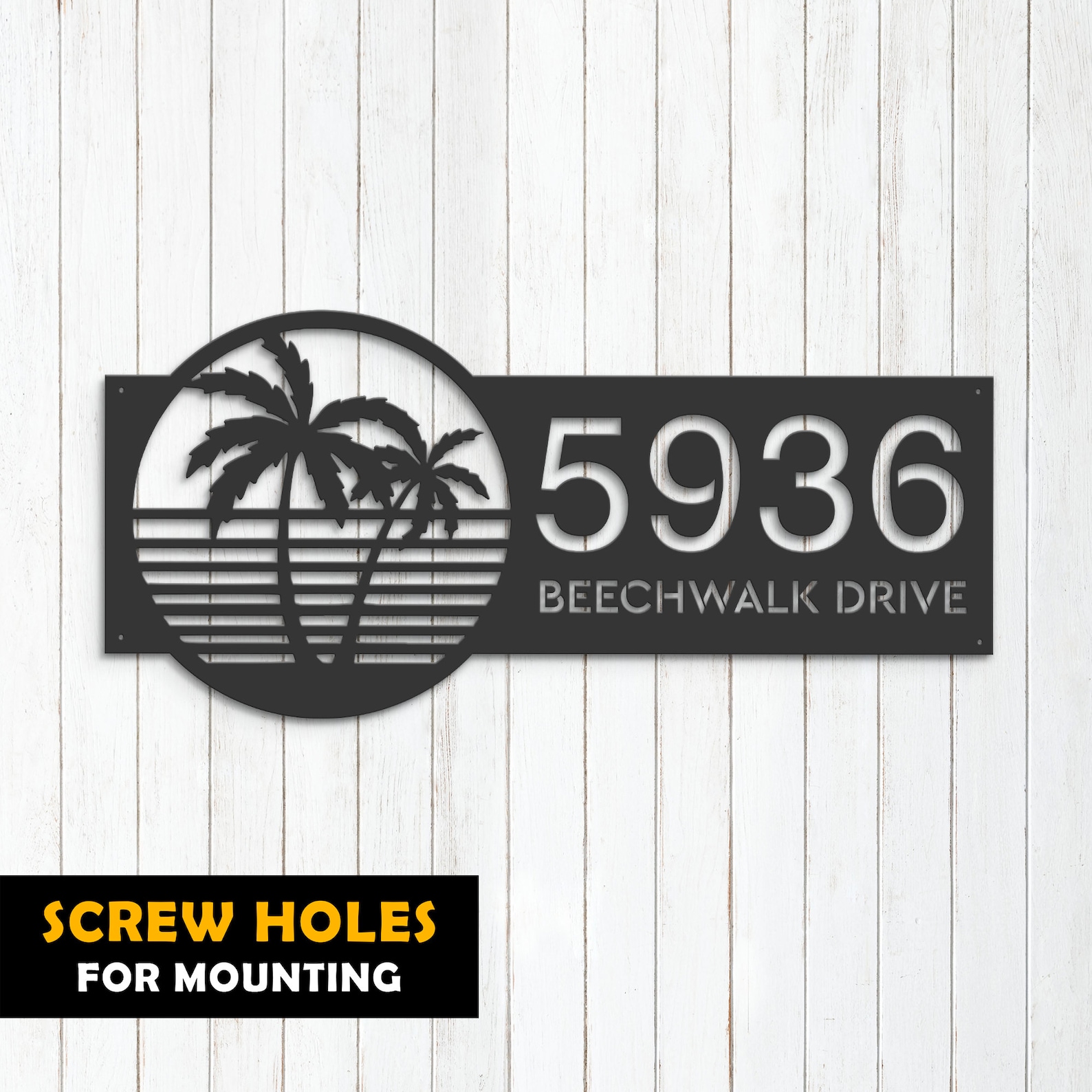 Be the first to review “Palm Tree Sunset Address Sign – Personal Metal Decor”