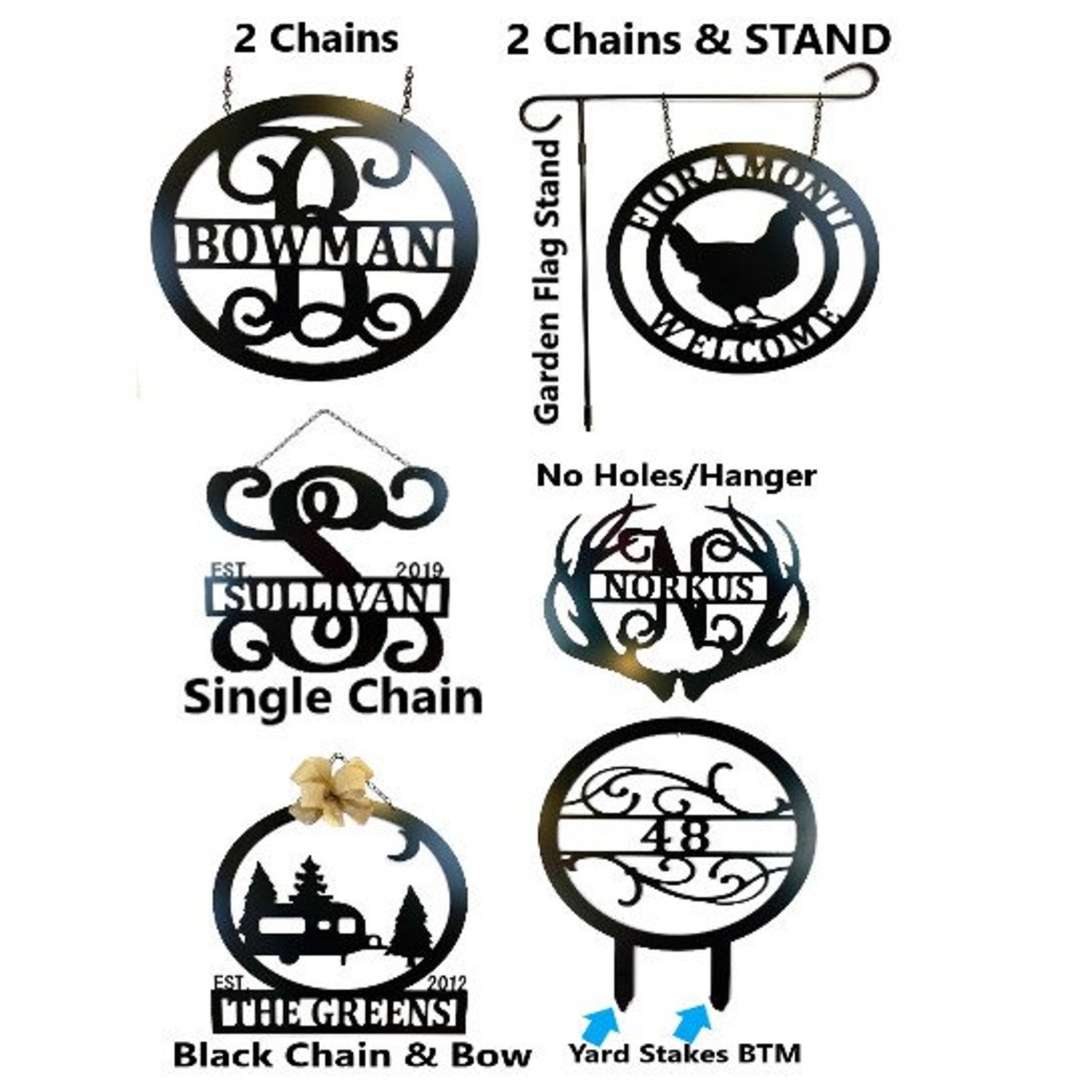 * SIZE – Customize initial/wording, color, and display option. Established year optional. – add on bow – stand – yard stake