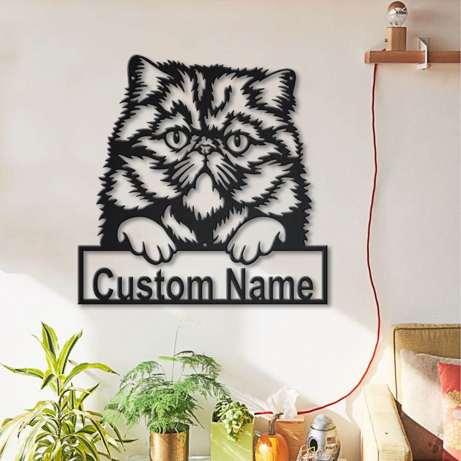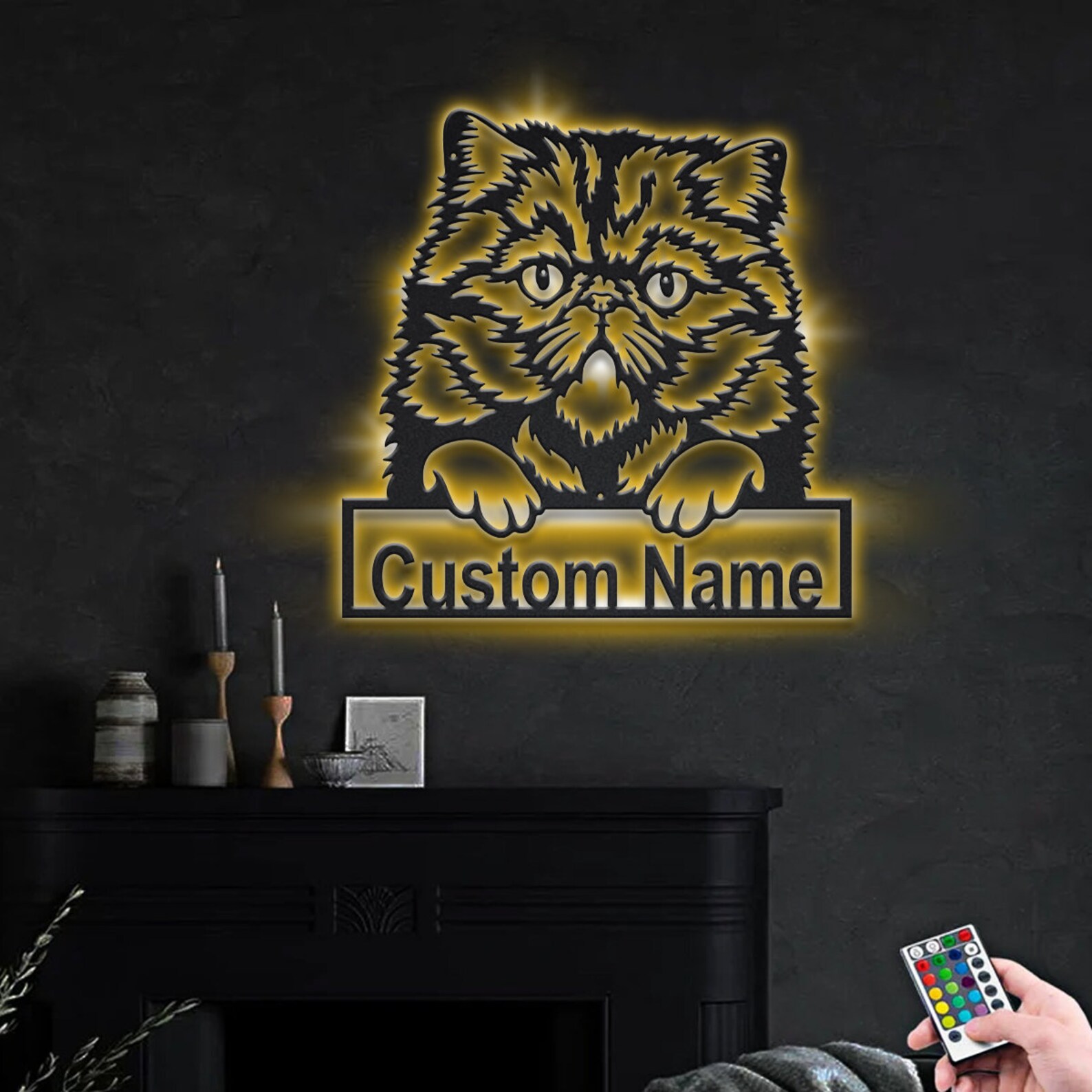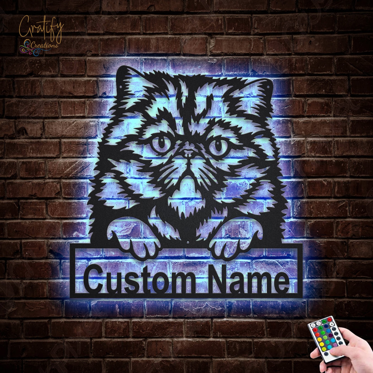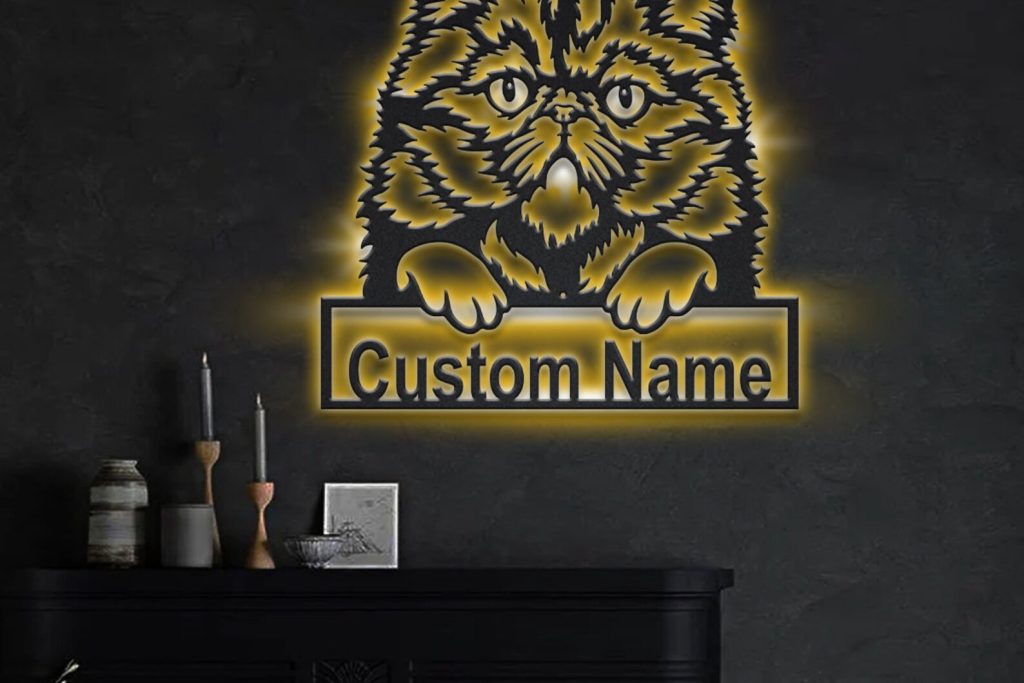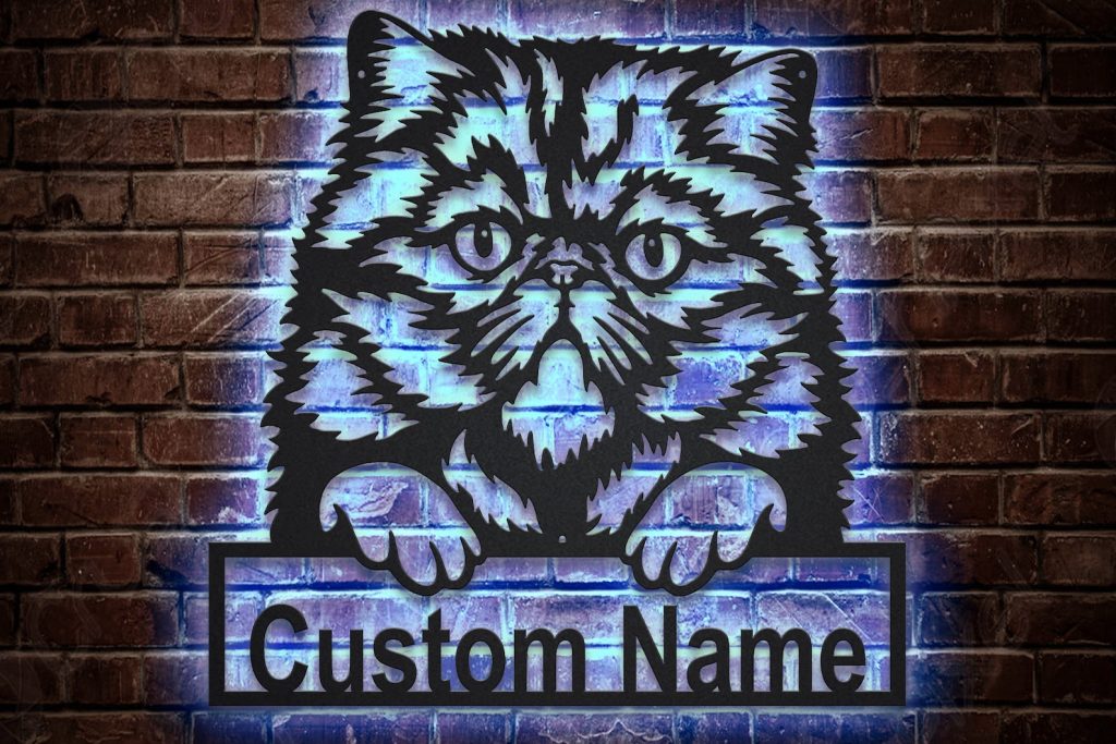 Be the first to review “Persian Cat Metal Sign with LED V2 – Wall Decor”