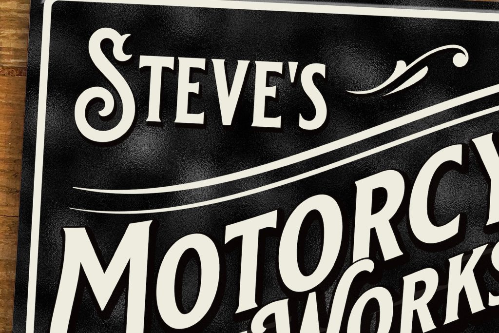 This Vintage style metal Motorcycle Workshop sign is a great addition to any Garage or Shed. Designed in Retro Classic Style, the sign is made from aluminium metal and is printed using dye sublimation inks which makes it completely waterproof. The design has been designed with an embossed effect. This is not real embossing but an effect within the artwork. The actual sign is flat.