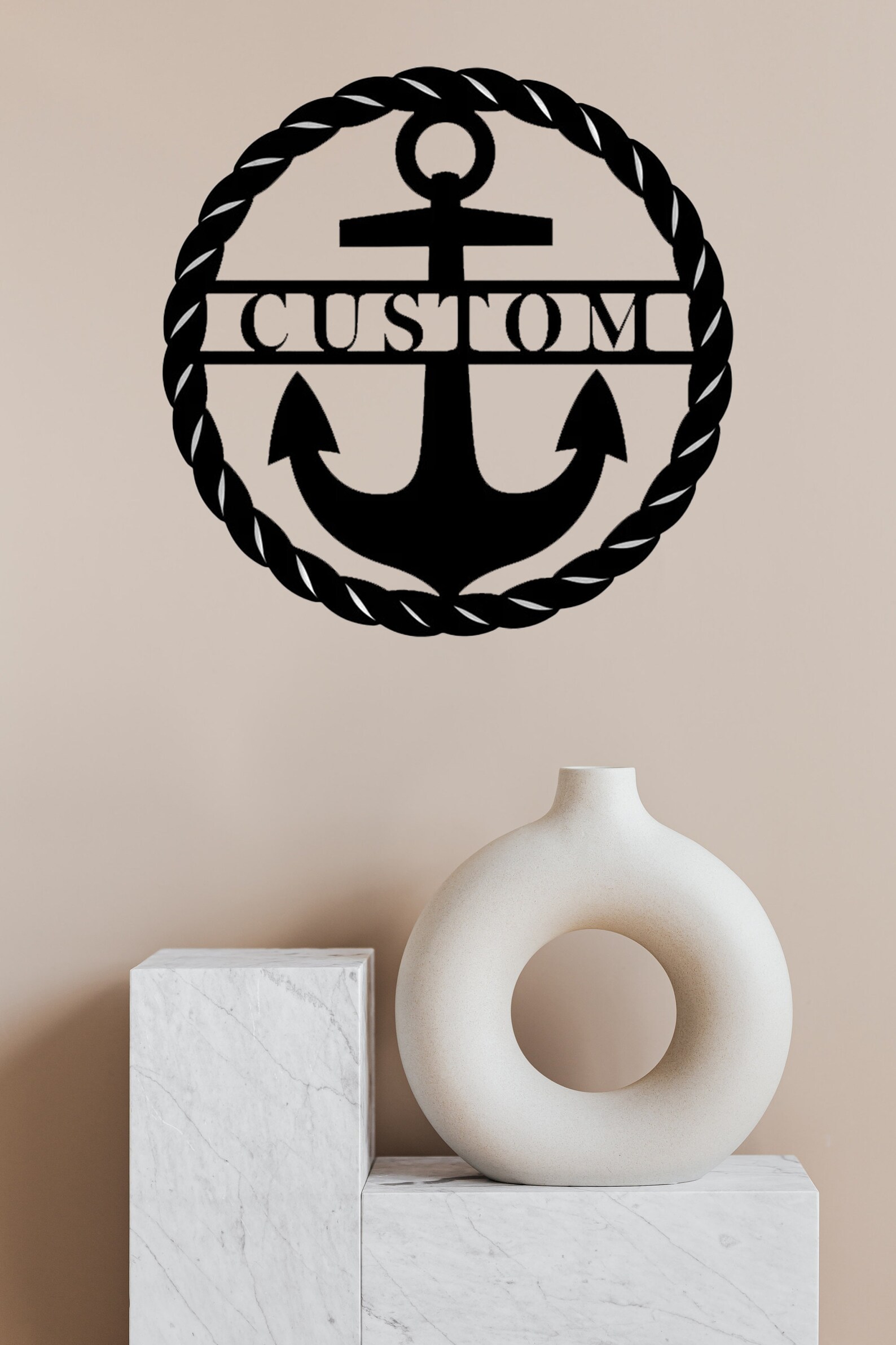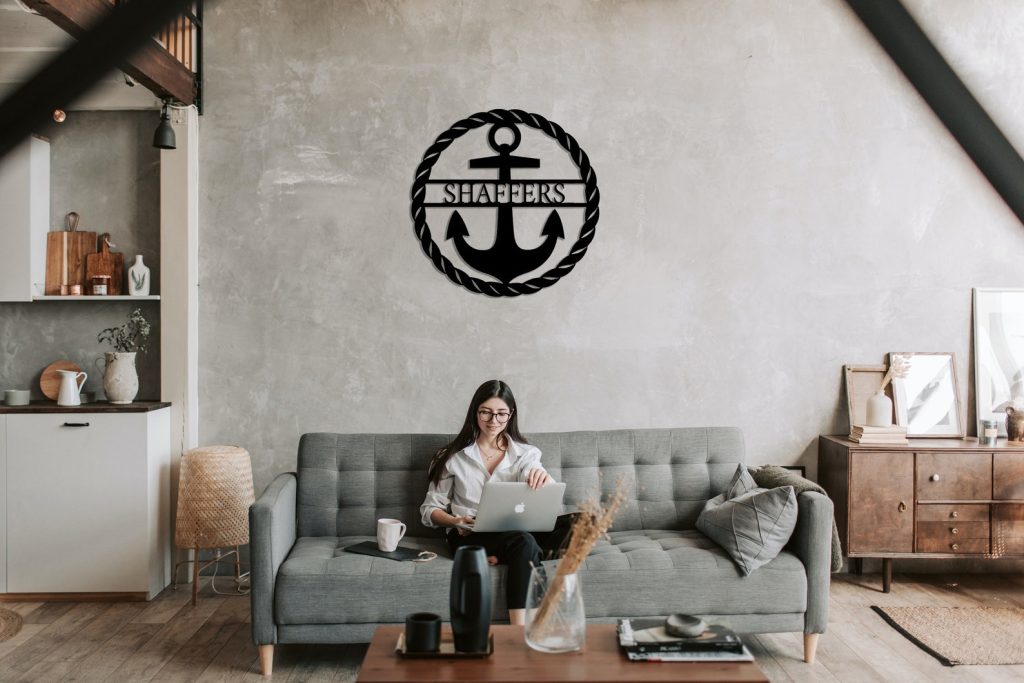 Beach House Sign Personalized, Front Porch Sign, Modern Metal Wall Art Decor, Anchor Wall Decor, Metal Anchor Sign for Living Room Decor