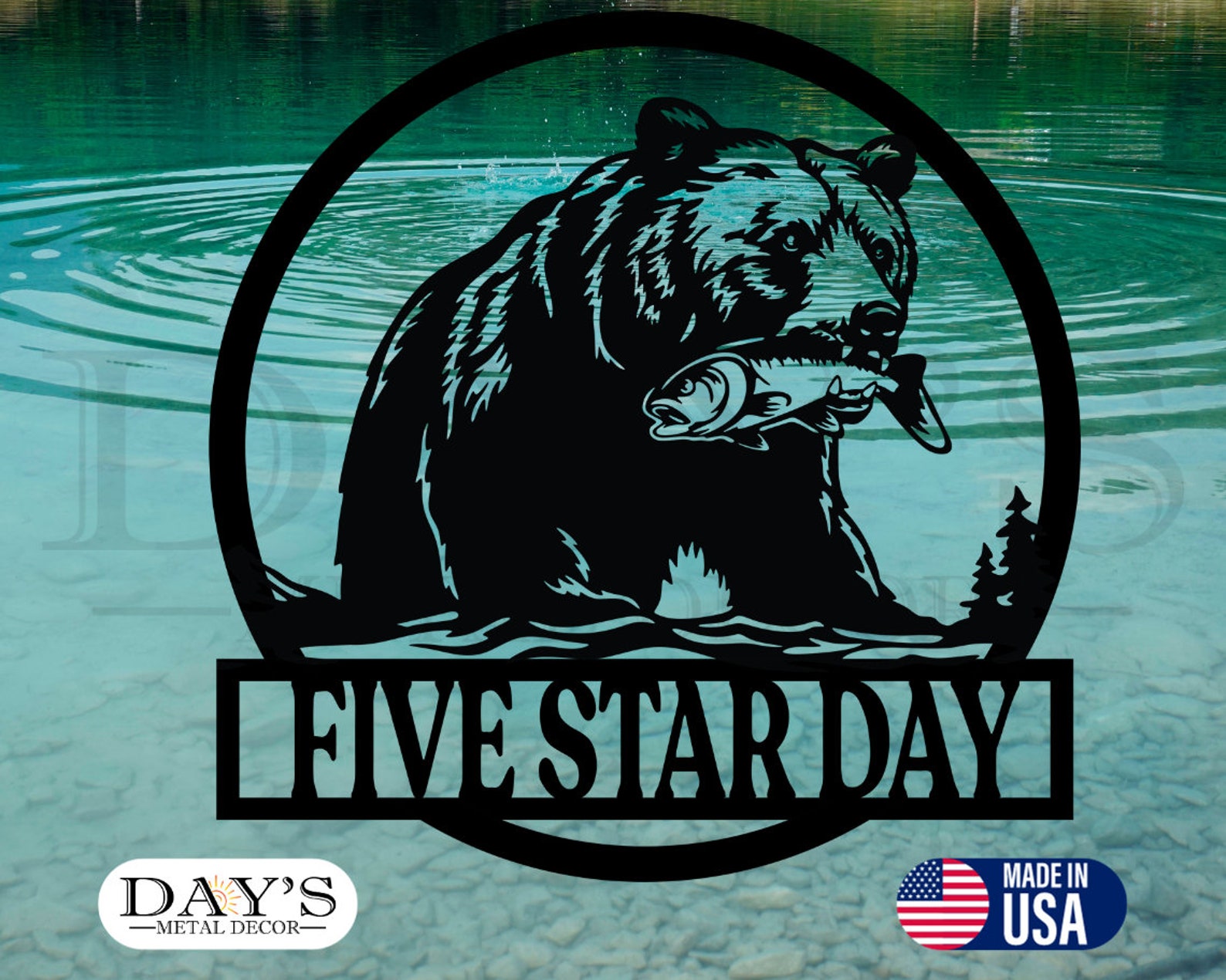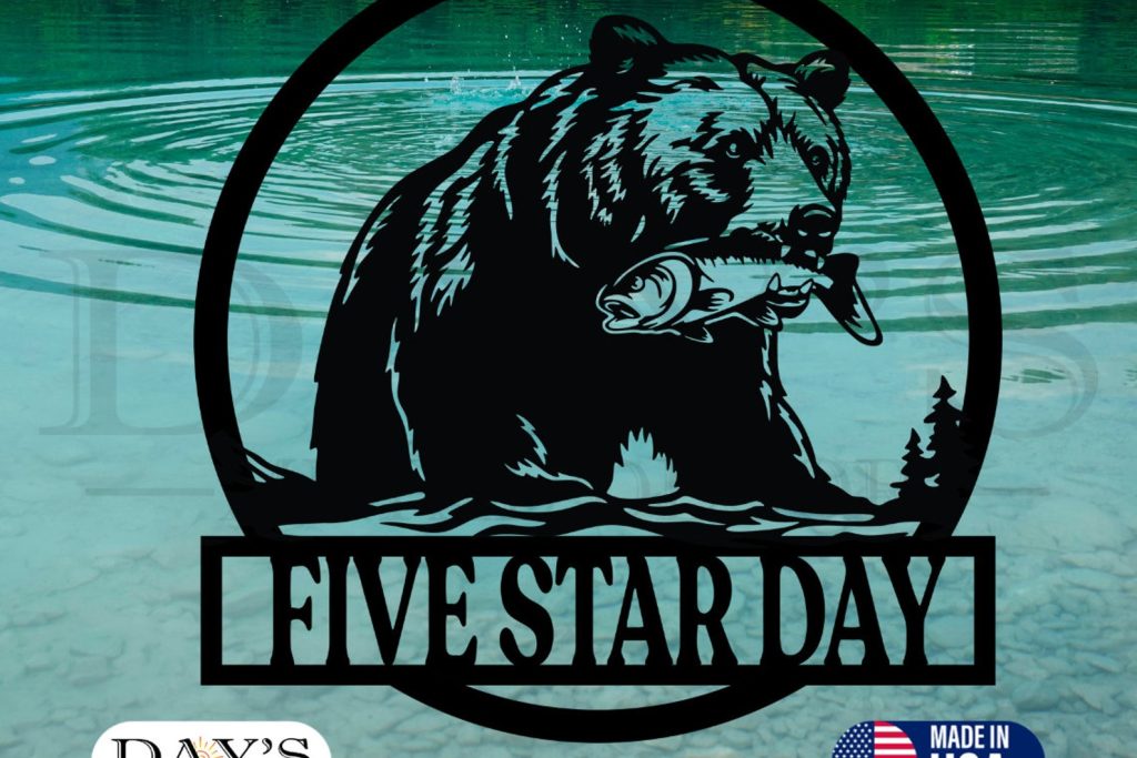 Personalized Bear with Fish Metal Sign: Outdoor Decor