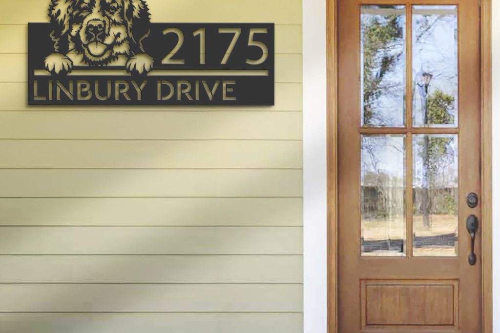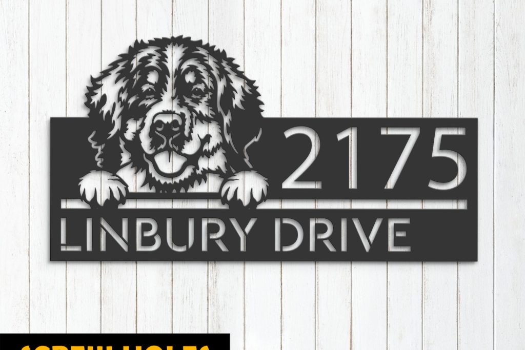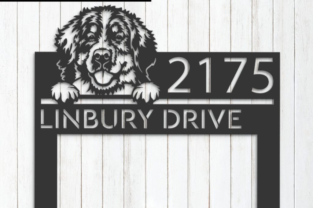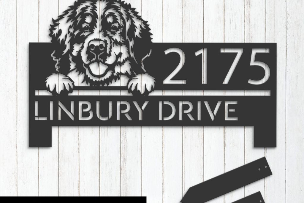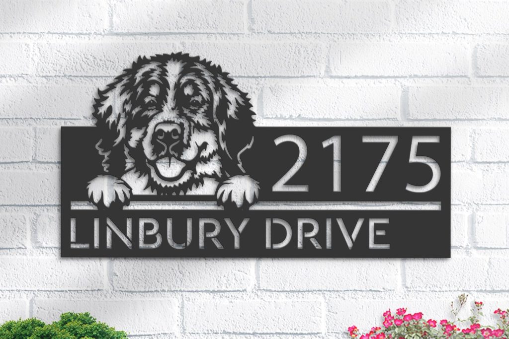 Personalized Bernese Mountain Dog Metal Address Sign – Custom House Number