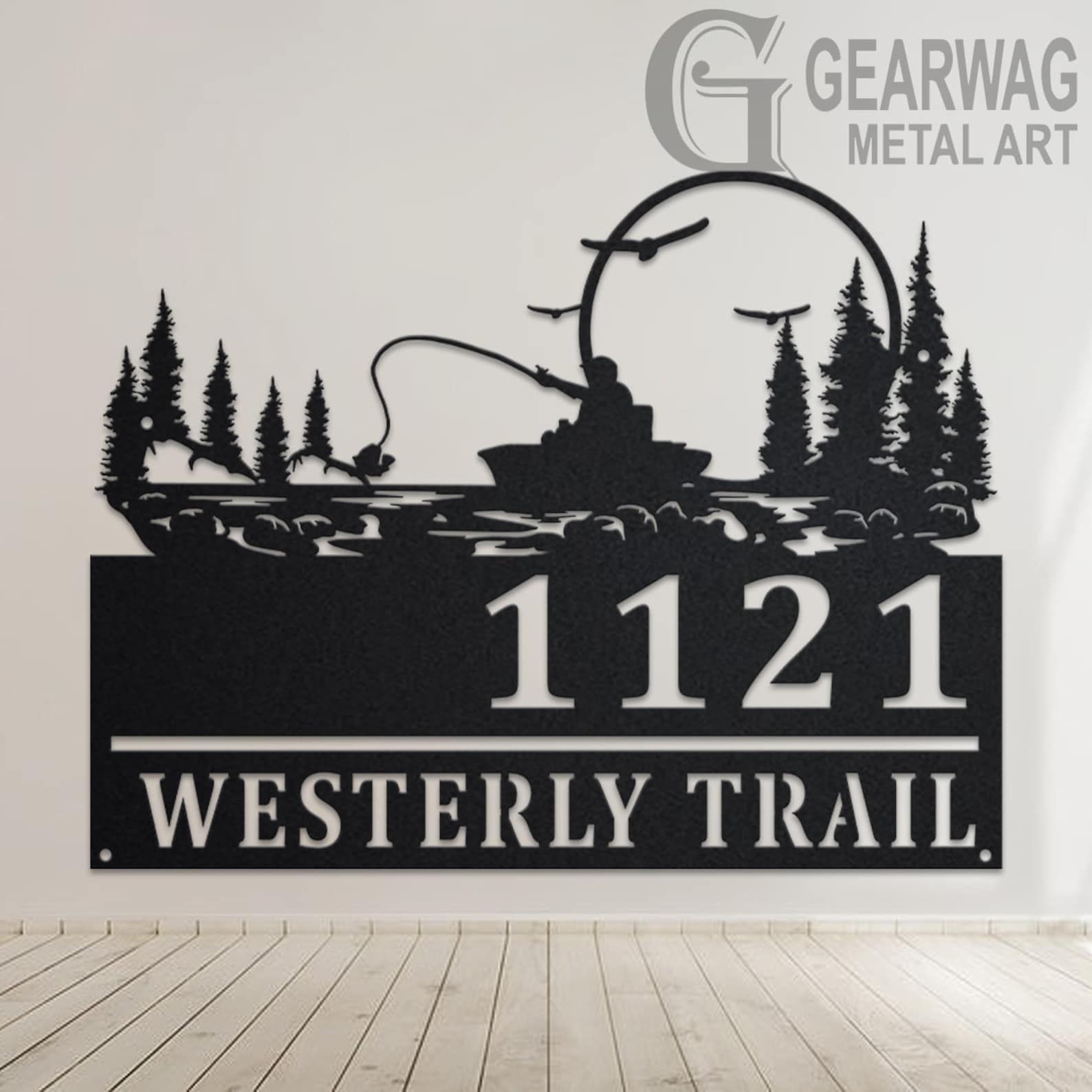 Personalized Boat Fishing Metal Address Plaque – Outdoor Yard Sign