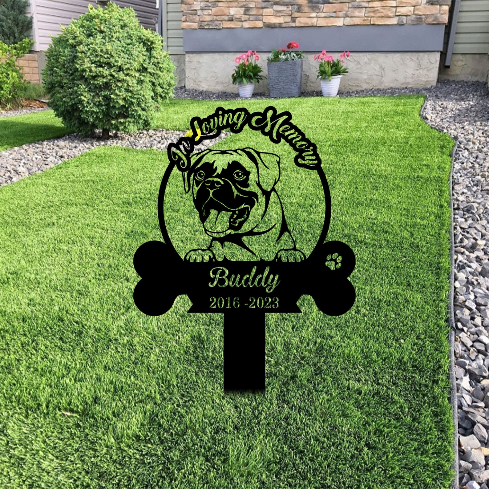 Personalized Dog Memorial Stake, In Loving Memory Boxer Dog, Metal Stake,Beagle, Pet Grave Marker, Remembrance Stake, Boxer Dog Sign