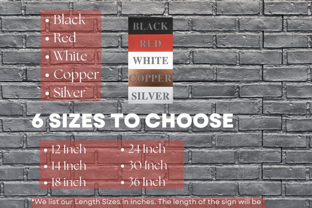 Each metal sign is laser cut from 18 Gauge high-quality steel using top-of-the-line laser technology to ensure precise design and powder coated for a smooth and durable finish.