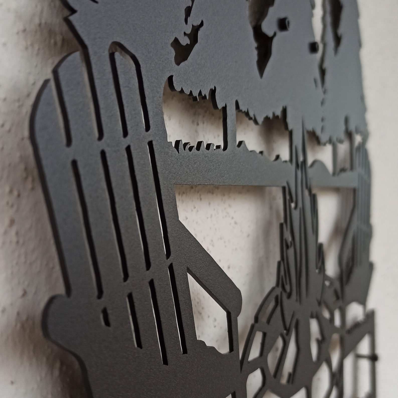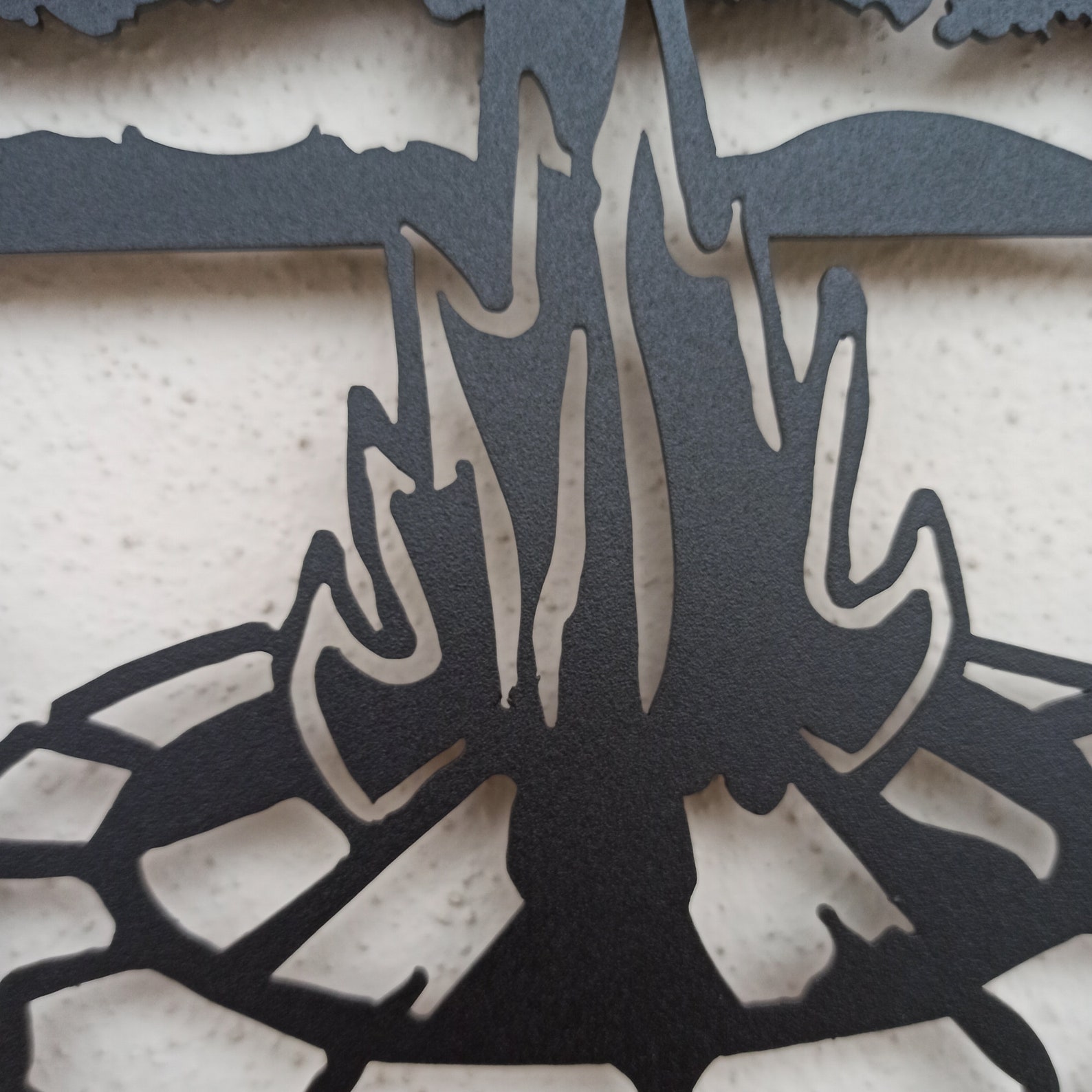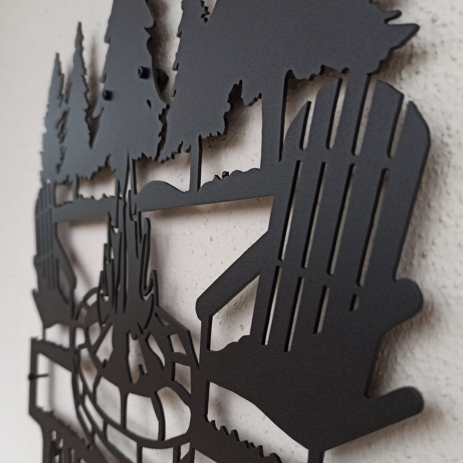 The product stands 0,4inches (1 cm.) from the wall. Lightweight metal decor is easy to handle, to mount and ready to hang on your walls. You can hang it with a single nail from the hook on the back of the decor. Doesn9;t need any additional mounting process. Feel free to message us for any advice on hanging your new sign.