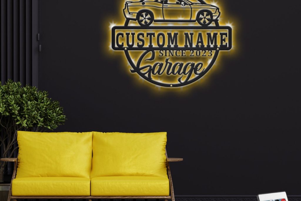 Personalized Car Garage Name Sign with LED Light