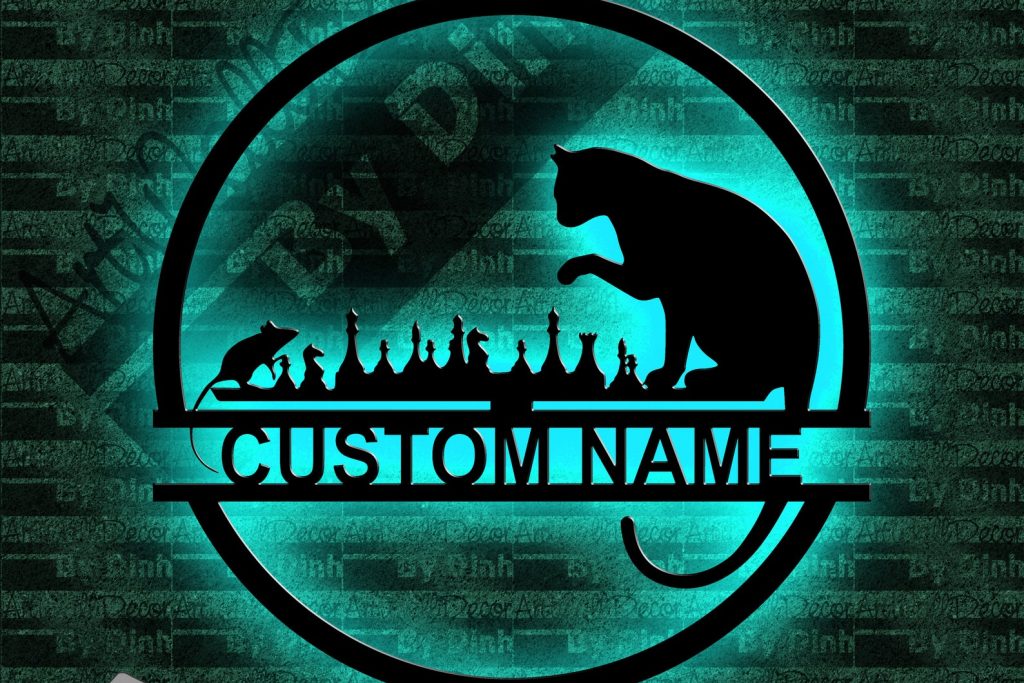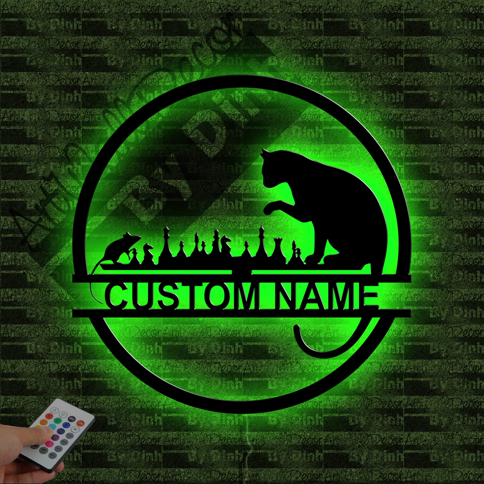 Be the first to review “Personalized Cat and Mouse Metal Sign with LED – Nursery Decor”