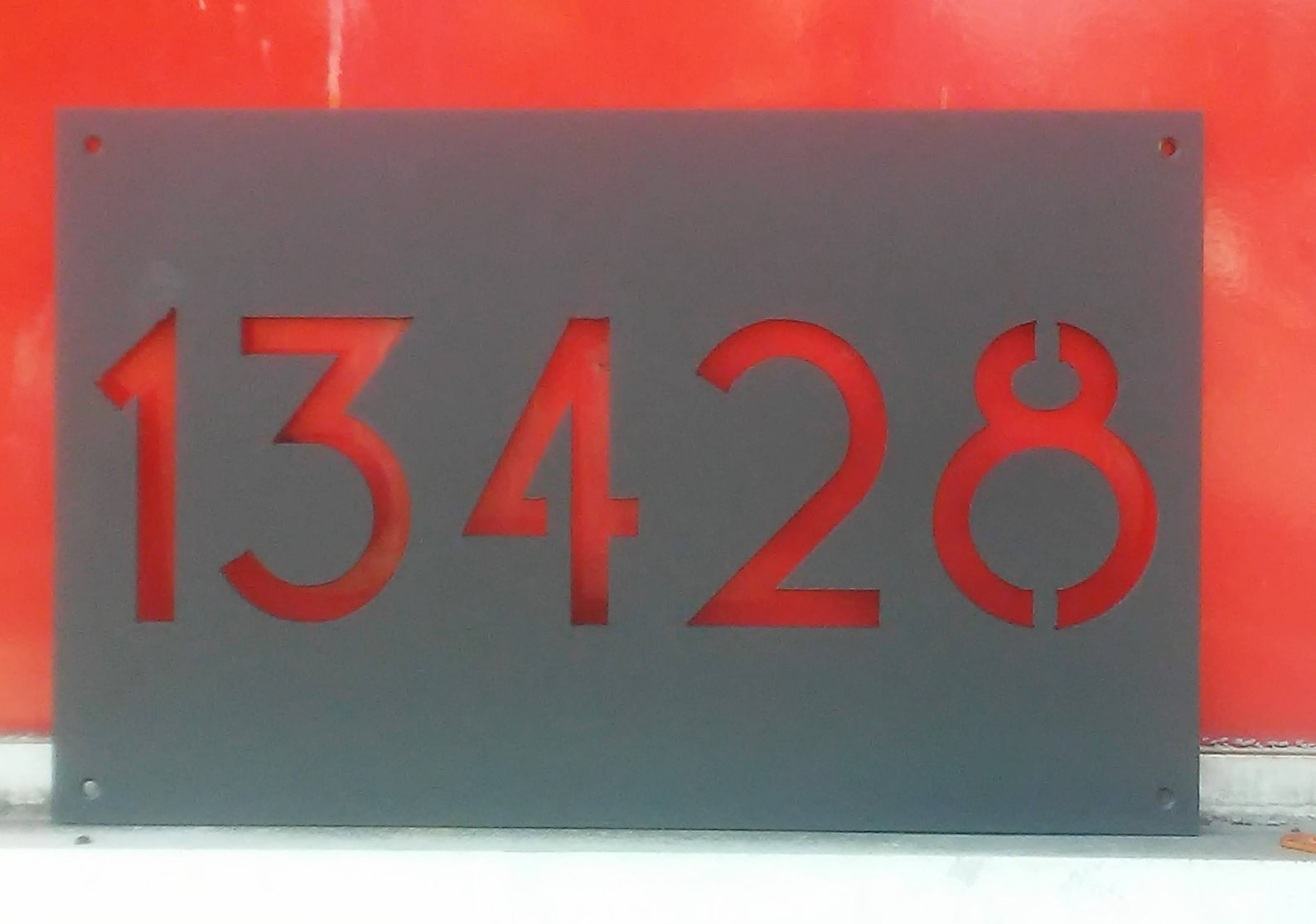 A British made, high quality house plaque, featuring a unique design. Premium quality, durable and suitable for inside or outside this powder coated sign is the perfect way to clearly identify your house name, number, or both. Regular Size, suitable for numbers (250mm x 200mm x 2mm) Large Size, suitable for names and numbers (450mm x 400mm x 2mm) – 2mm Mild Steel – Powder Coated – Comes in black as standard – White vinyl lettering applied as standard – Please specify what you would like writing on your sign when ordering (Name, number or both)
