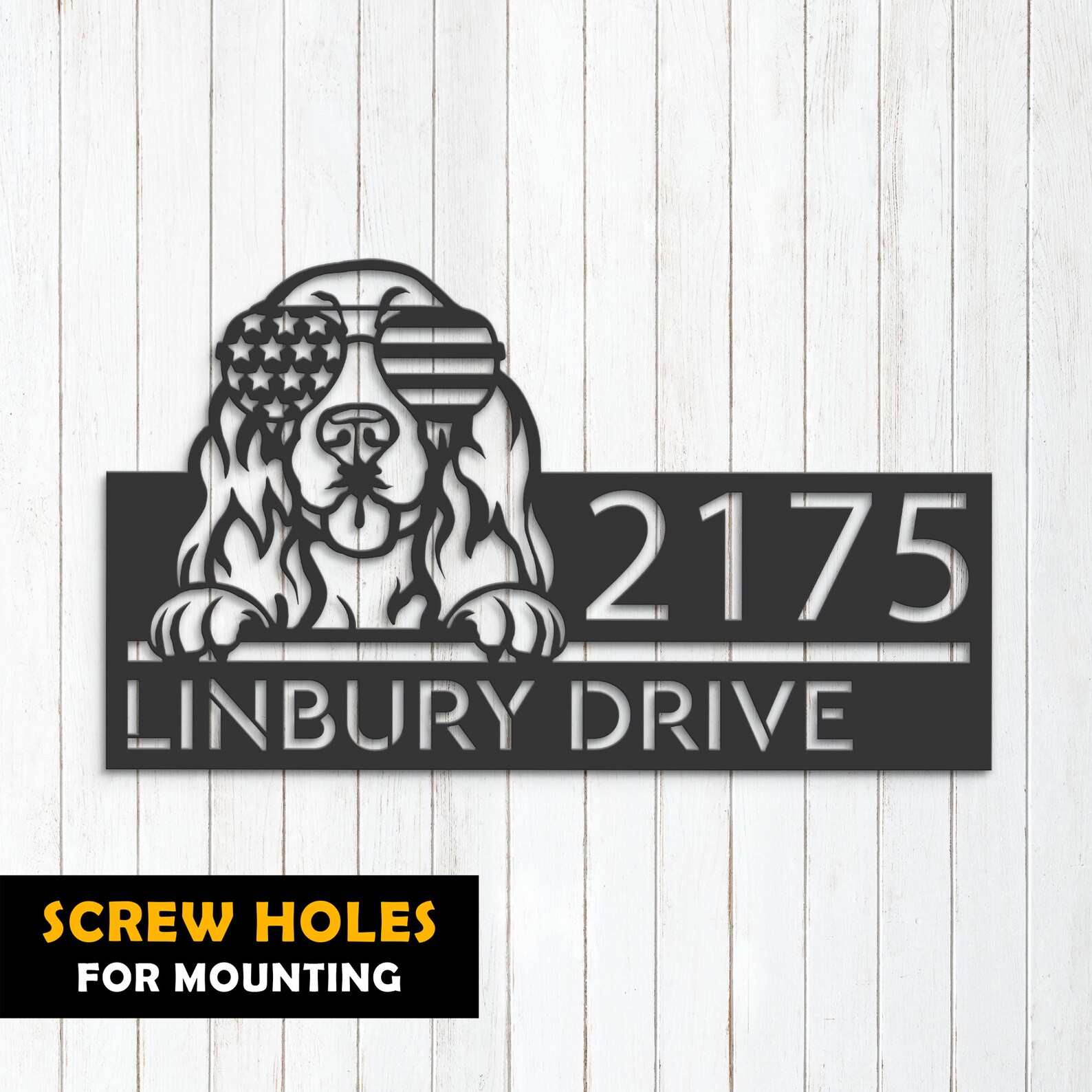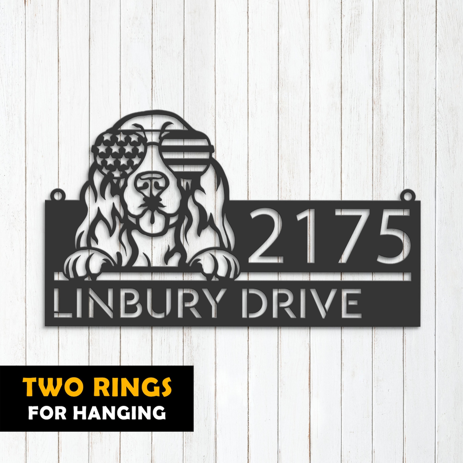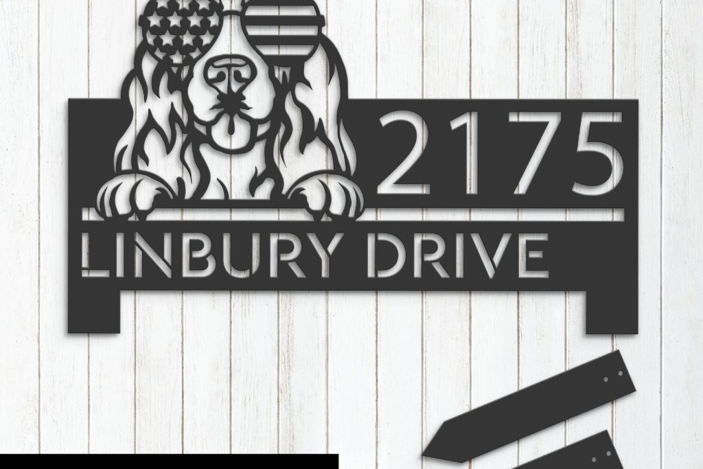 Be the first to review “Personalized Cocker Spaniel Metal Address Sign – US Flag”