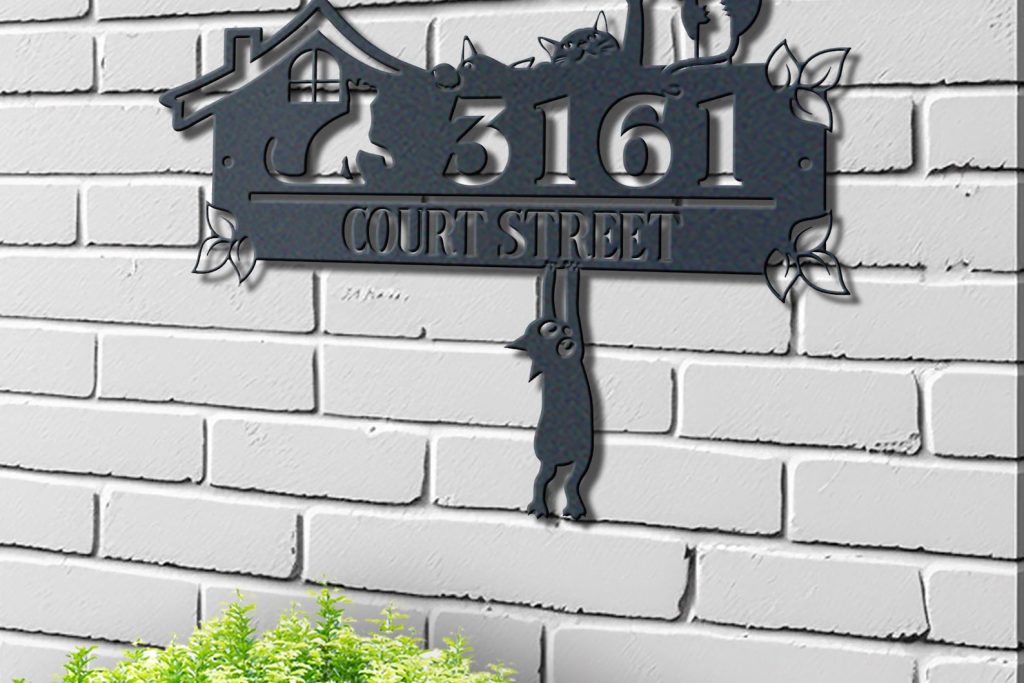 Customize your address sign with your choice of text, making it a great gift for any occasion. For cat lovers, our sign is available with options for cat mom or cat dad, making it a unique and thoughtful gift.