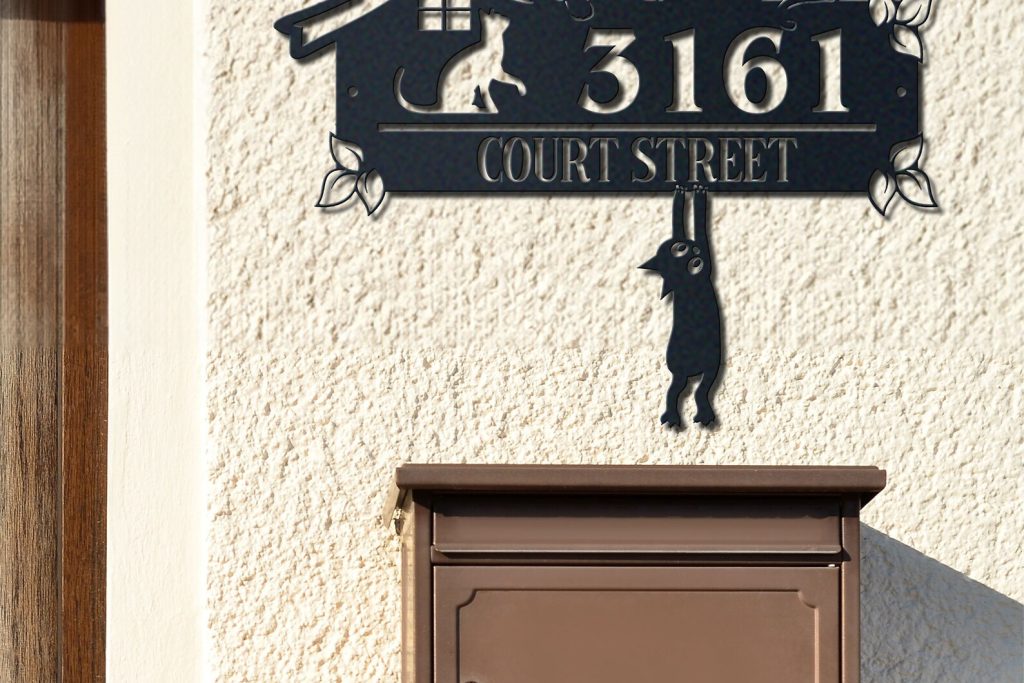 Be the first to review “Personalized Cute Cat Metal Address Sign – House Number”