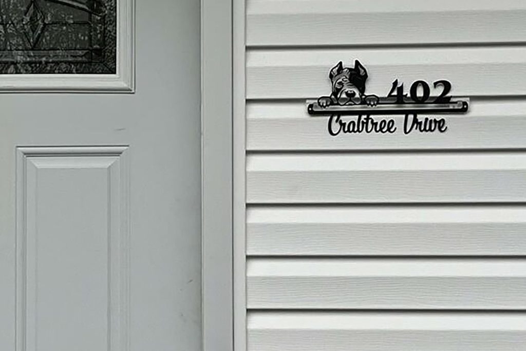 Customize your house number sign with your choice of text, making it a great gift for any occasion. For dog lovers, our sign is available with options for dog mom or dog dad, making it a unique and thoughtful gift such as new house gift, housewarming gift…