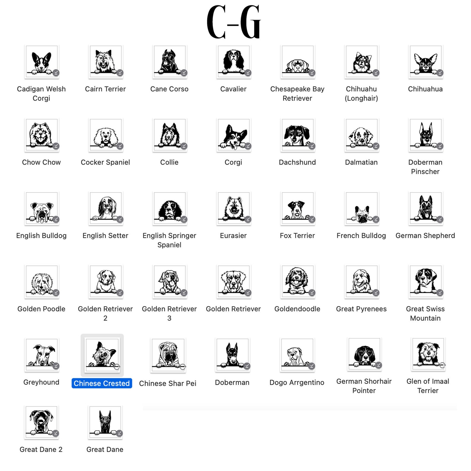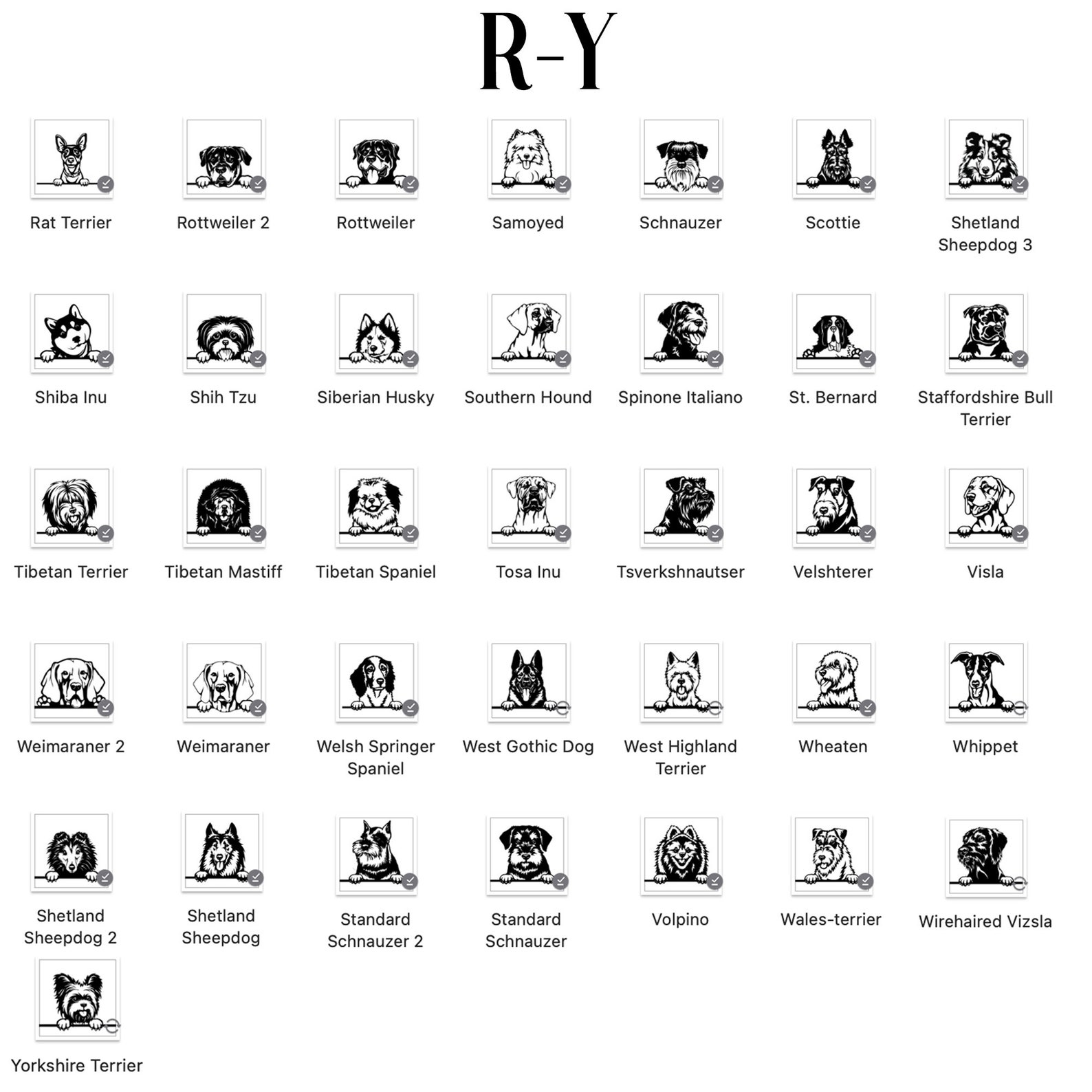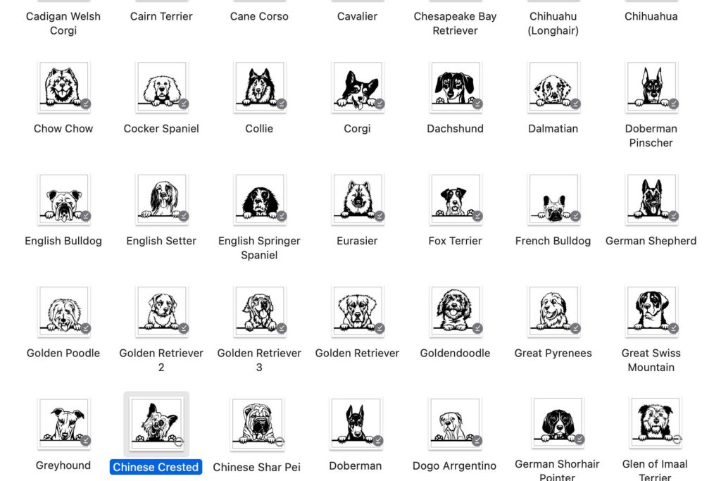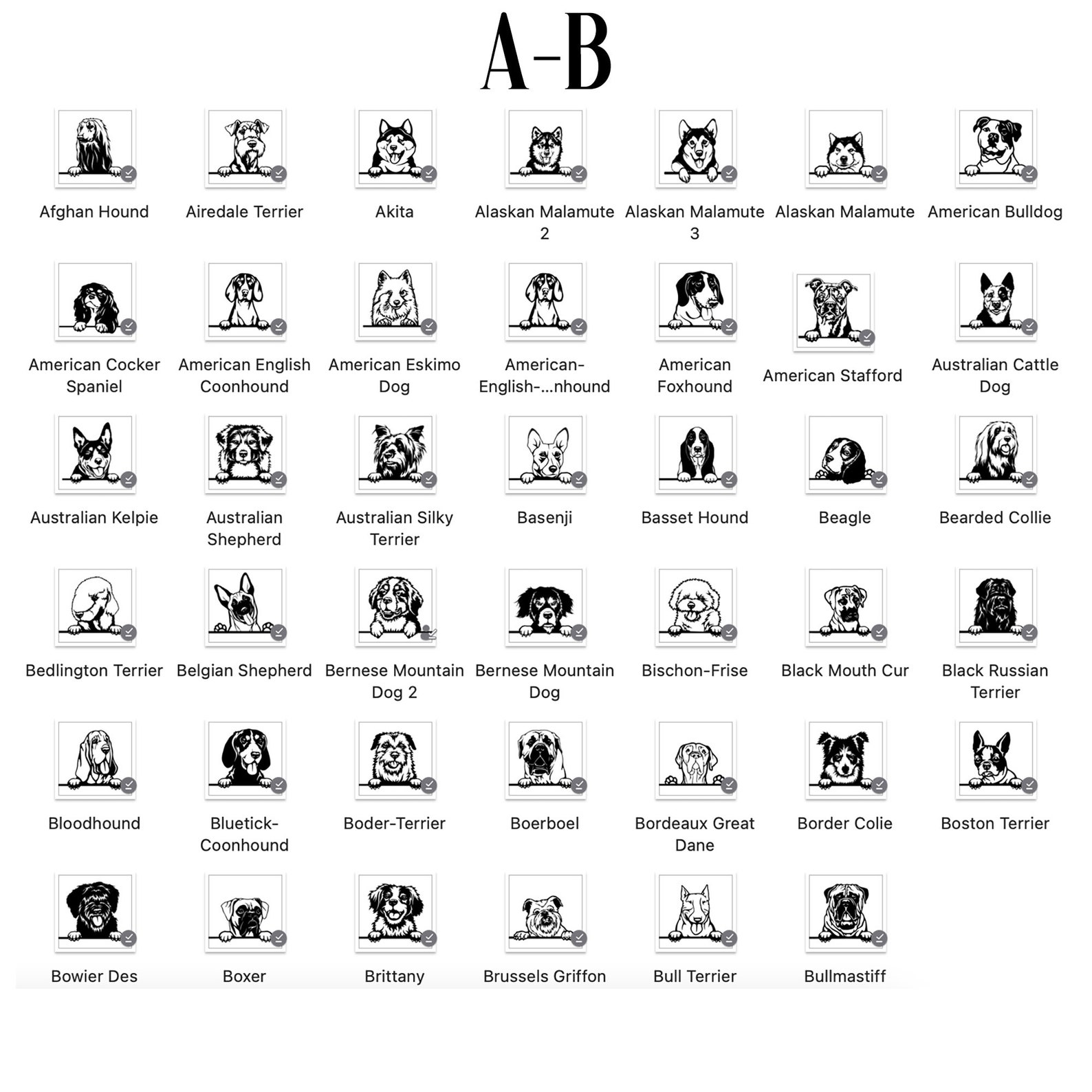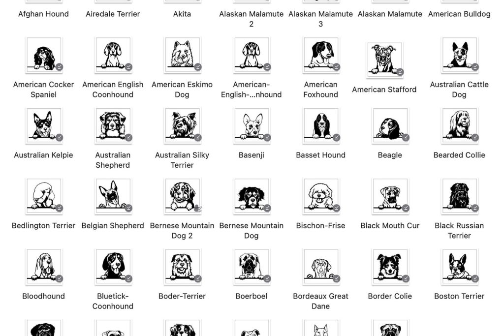 tFirst, browse through the images and locate the section labeled A-B, C-G, H-P, or R-Y depending on the breed of your dog.