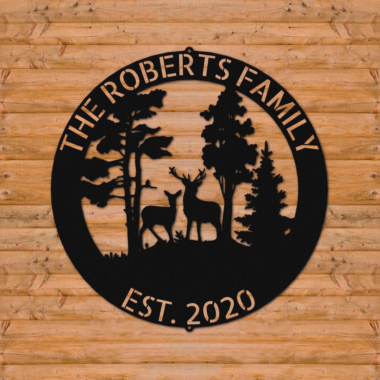 Introducing our captivating Metal Sign featuring a silhouette family of deer against a breathtaking forest backdrop! This meticulously crafted sign combines the beauty of nature with a touch of personalization, making it a must-have for any cabin or nature enthusiast9;s decor.