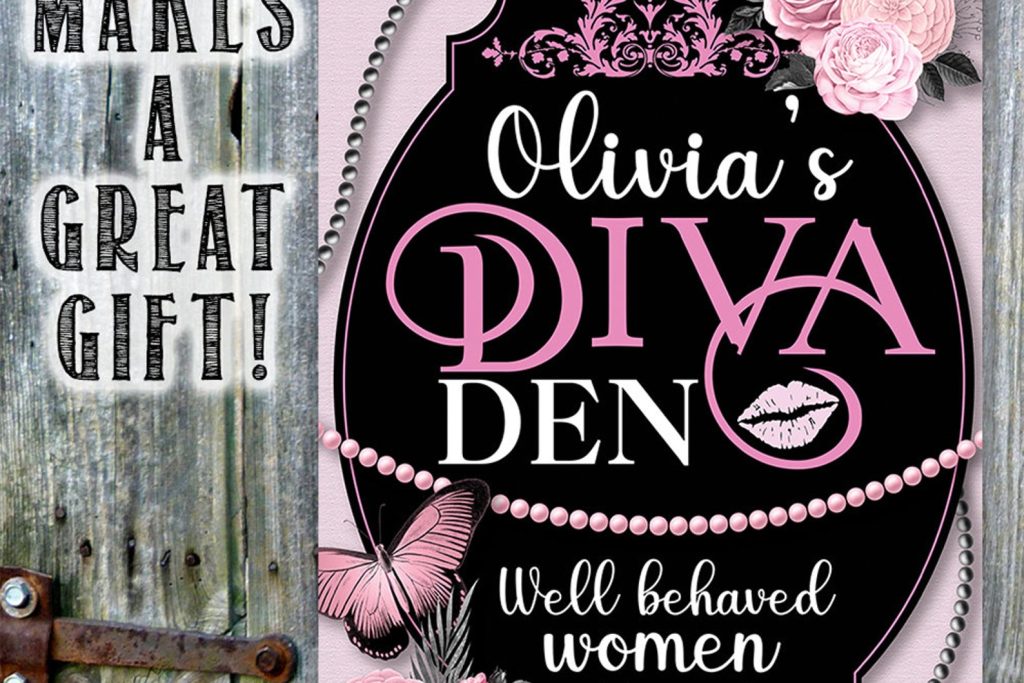 Personalized Diva Den 8" x 12" or 12" x 18" Aluminum Tin Awesome Metal Poster